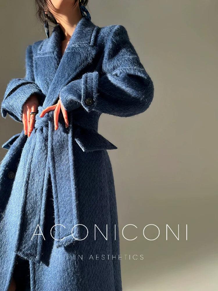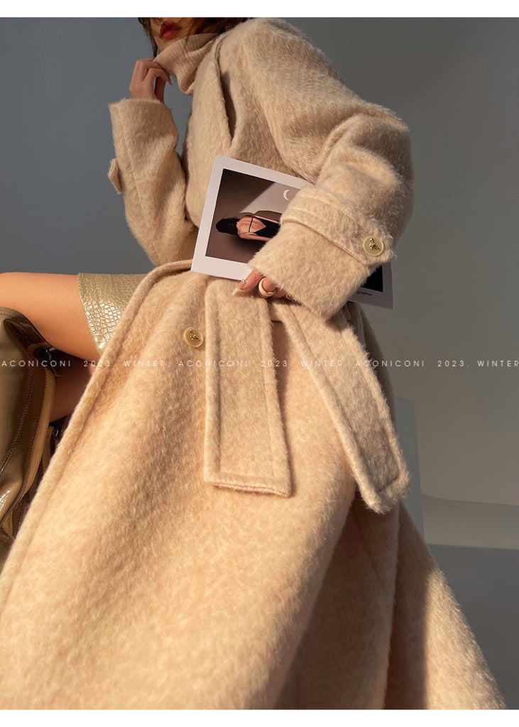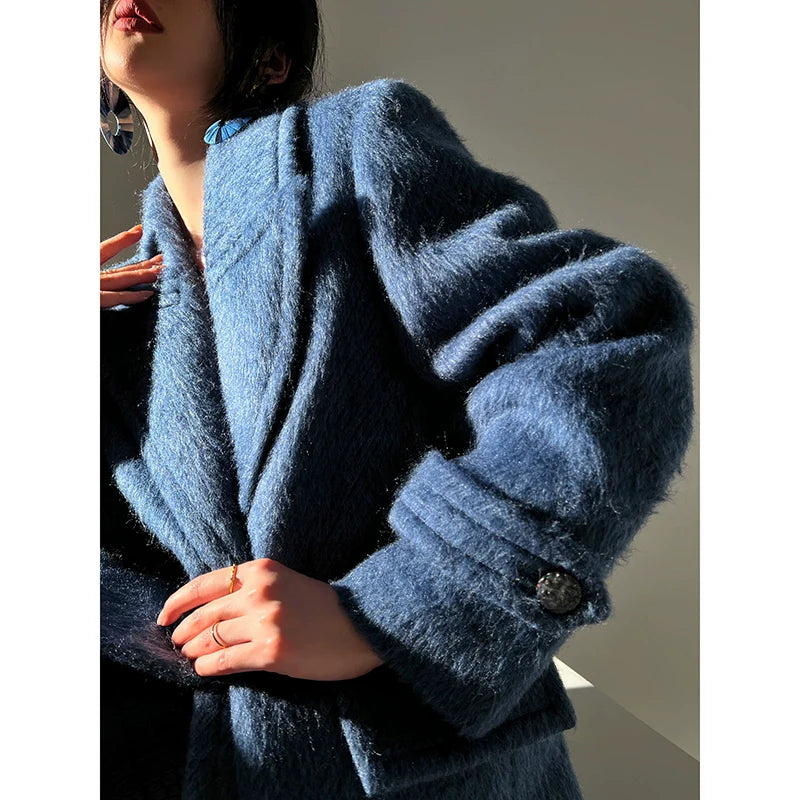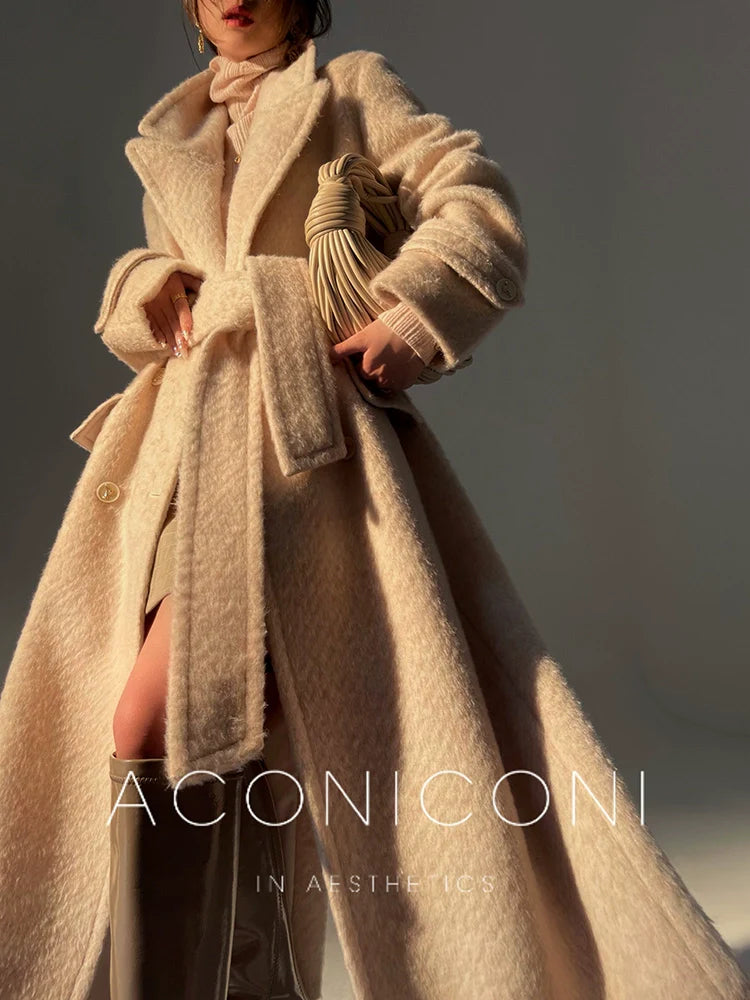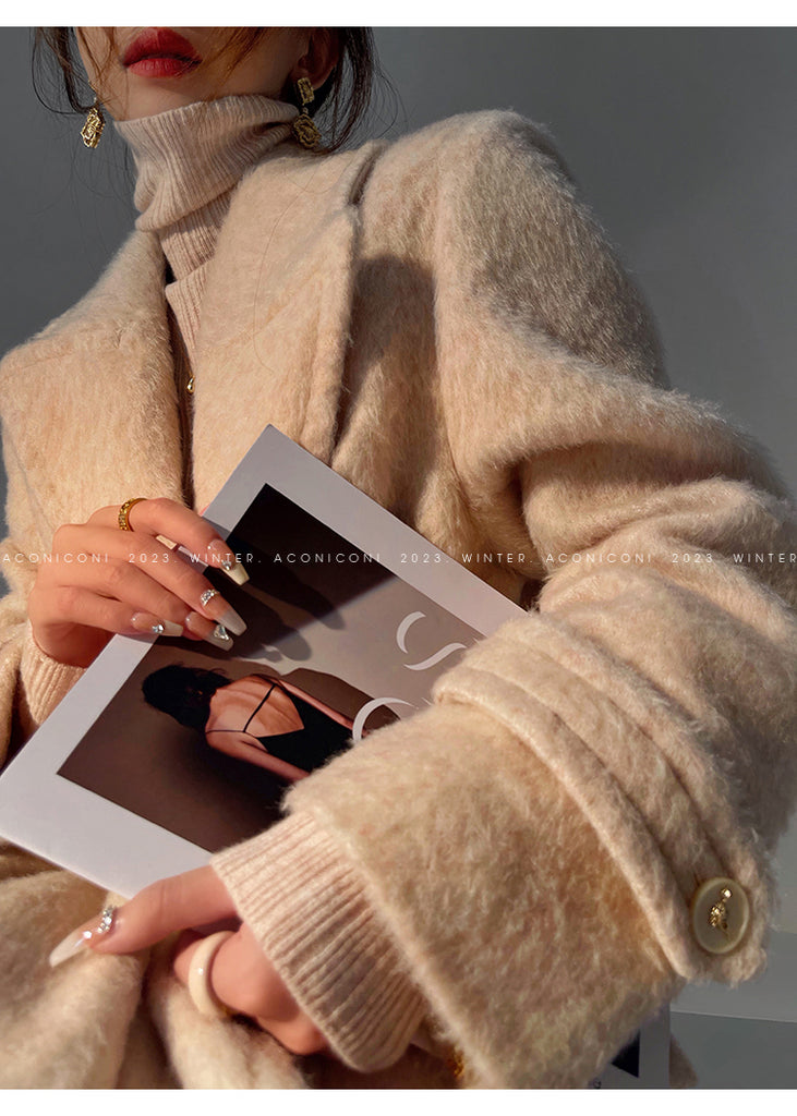 Aconiconi|Galan Sumu long-haired high-grade woolen long coat- Kalanchoe