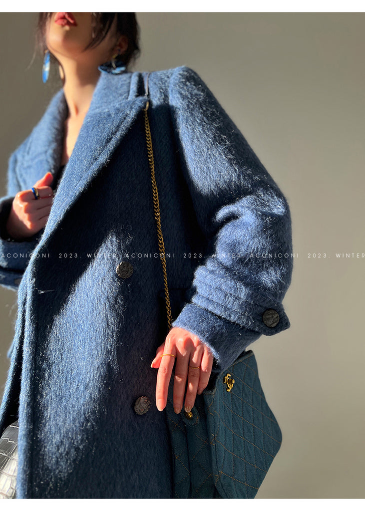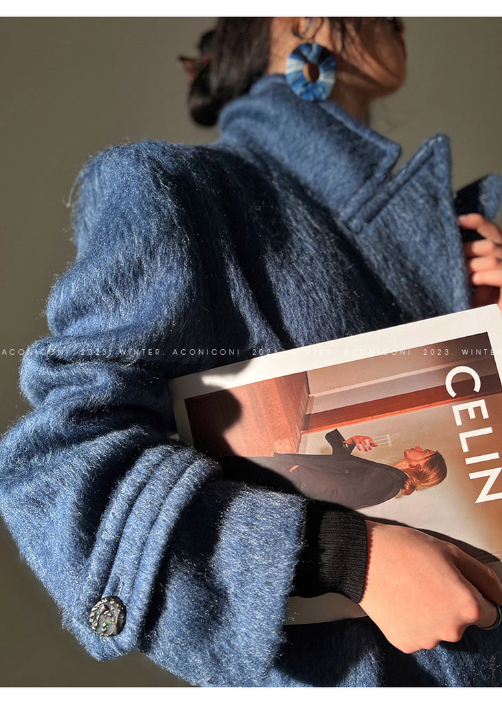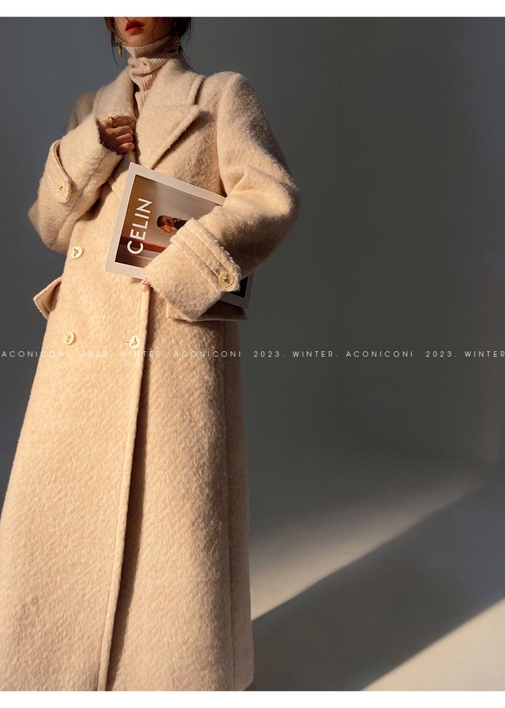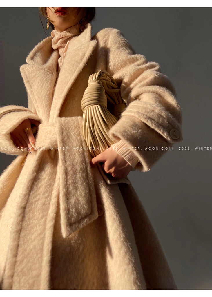 Aconiconi|Galan Sumu long-haired high-grade woolen long coat- Kalanchoe