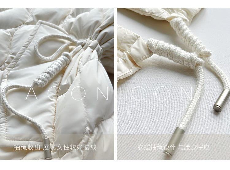 Aconiconi Elegant Duck Down Long Sleeve Hooded Long Fur Winter Coat - He Xu Ling Hua
