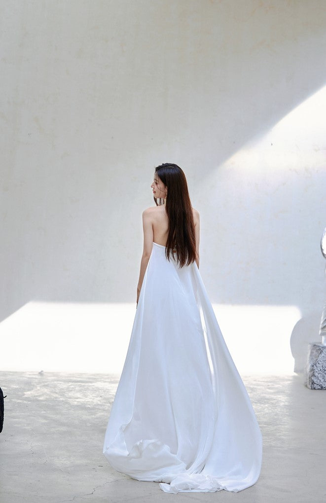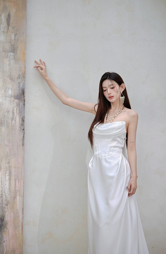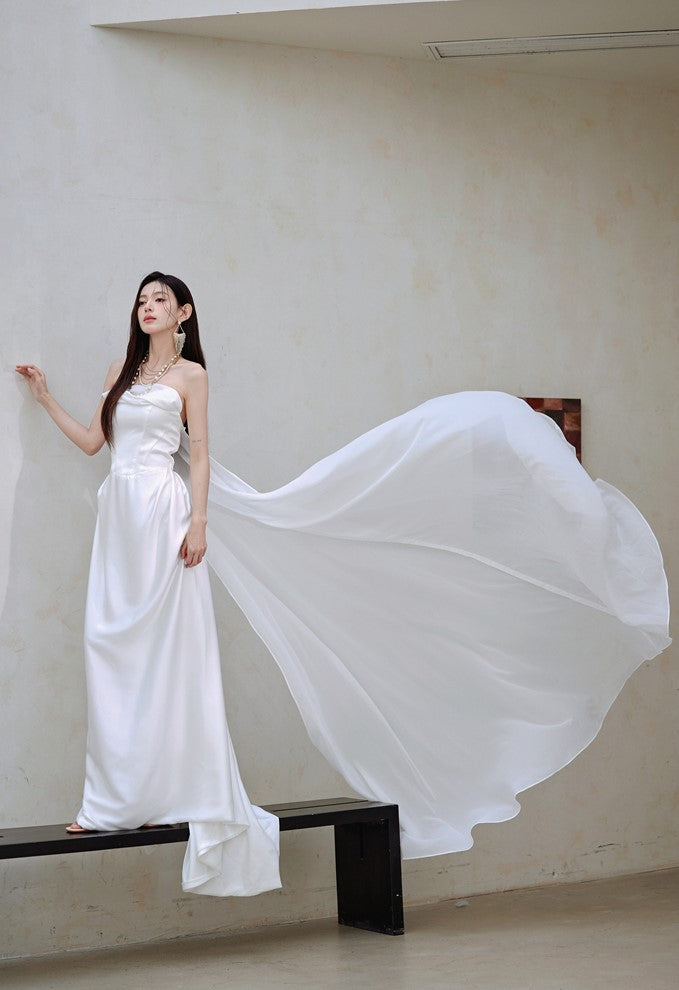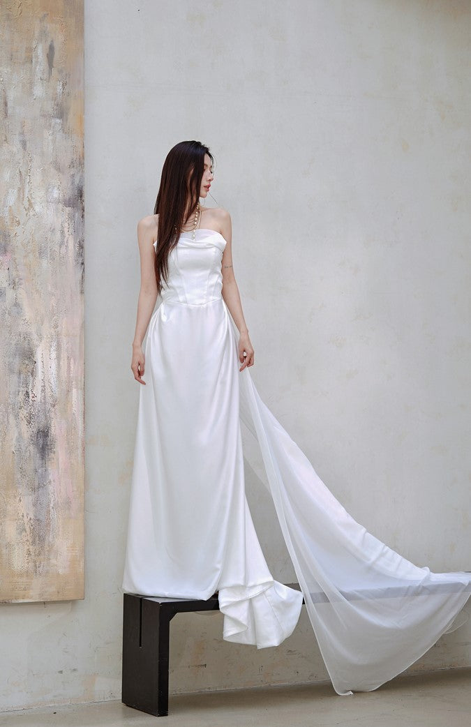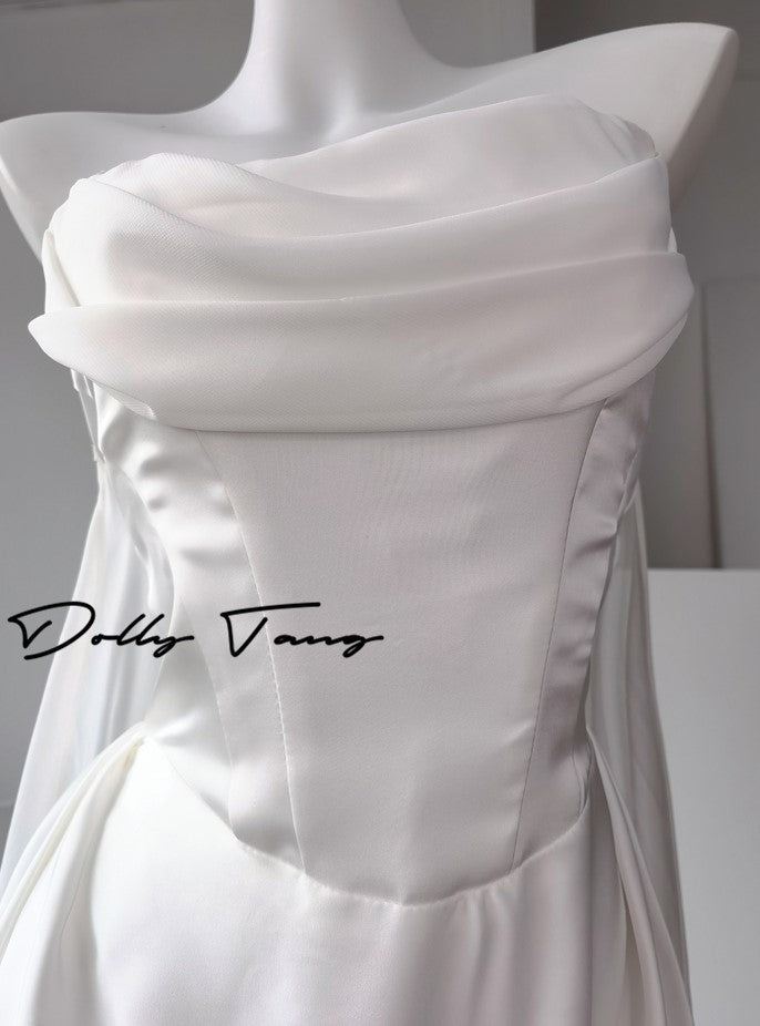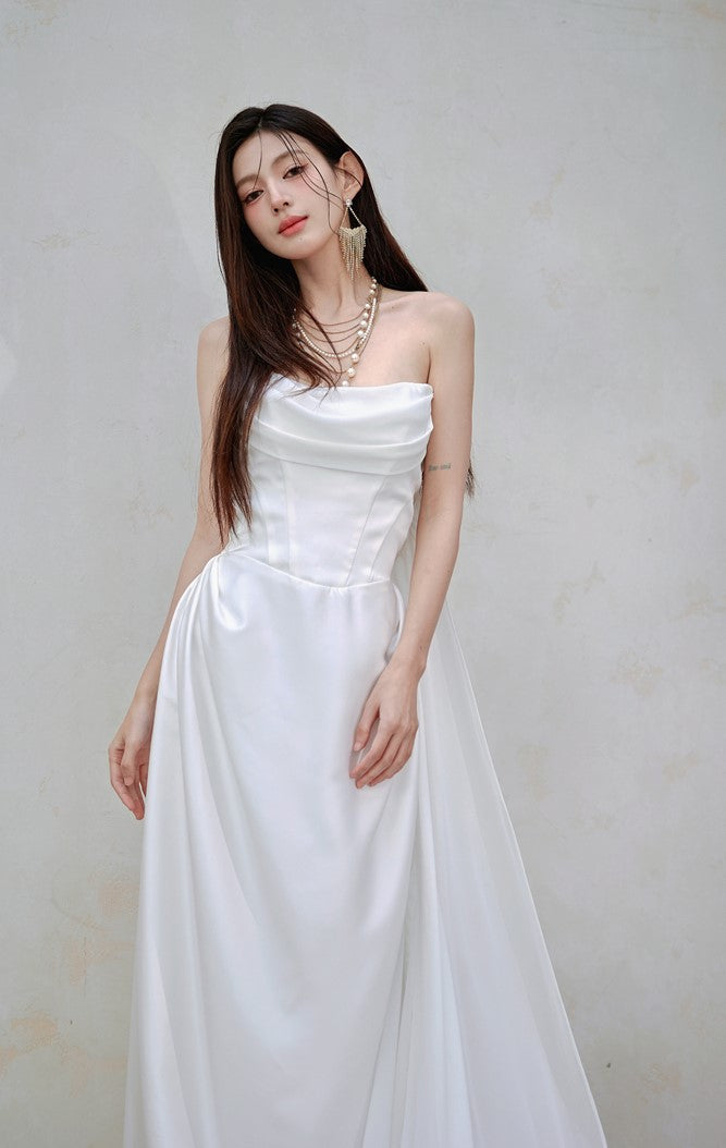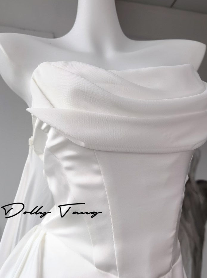 DOLLY Luxury White Bandeau Stain High Waist Long Wedding Dress-Lola