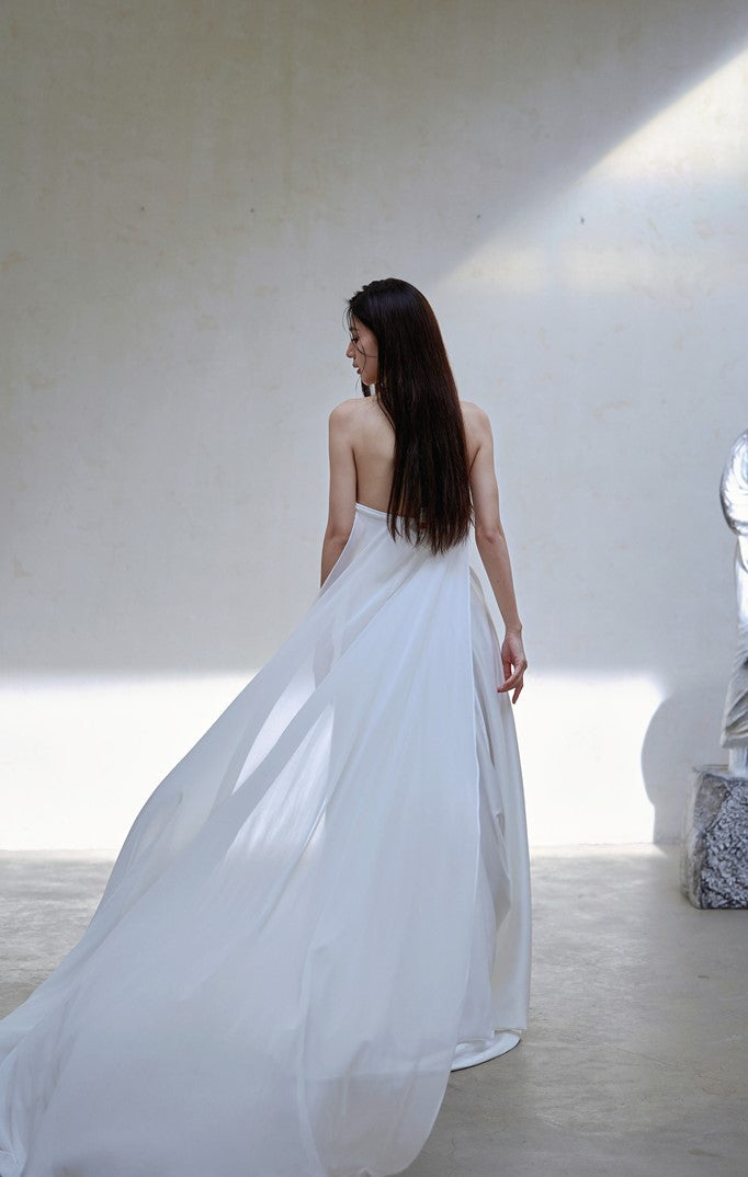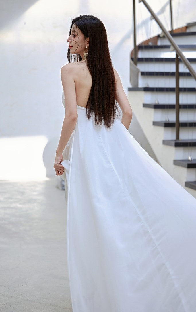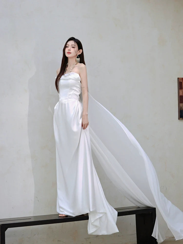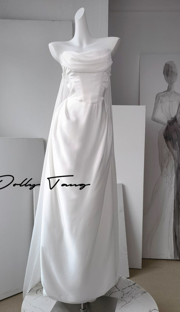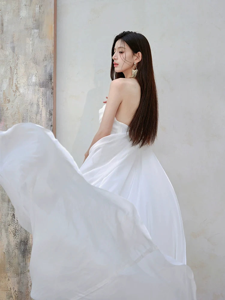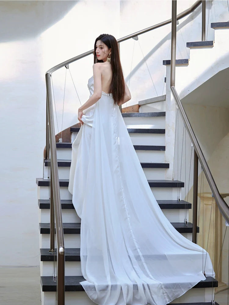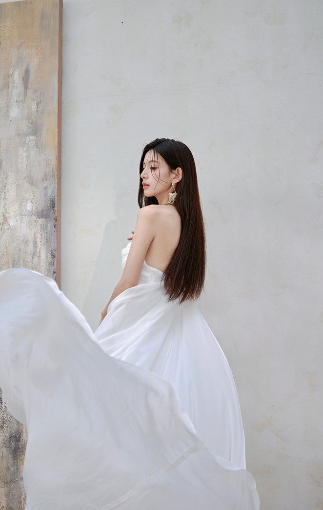 DOLLY Luxury White Bandeau Stain High Waist Long Wedding Dress-Lola