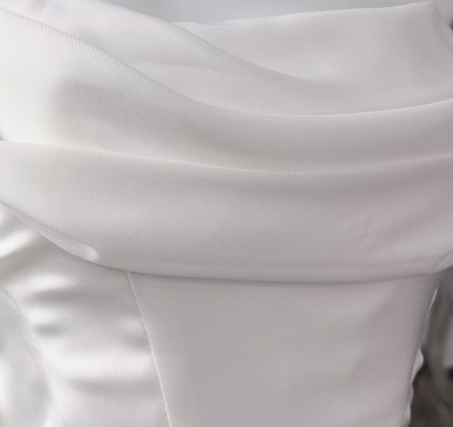 Introducing the DOLLY Luxury White Bandeau Stain High Waist Long Wedding Guest Dress-Lola. With its elegant, beautiful design and luxurious stain fabric, this dress is perfect for any formal occasion. The high waist and long length create a flattering silhouette, making you look stunning and confident. Make a statement at your next event with this gorgeous dress.