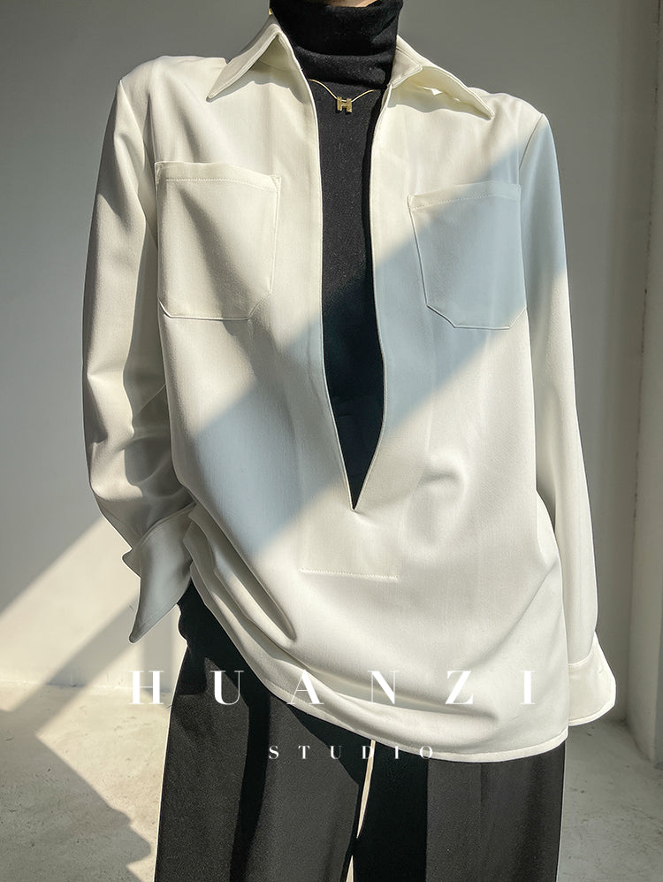 Huanzi custom high end quality shirts professional iron-free pullover loose retro shirt - Tiblw