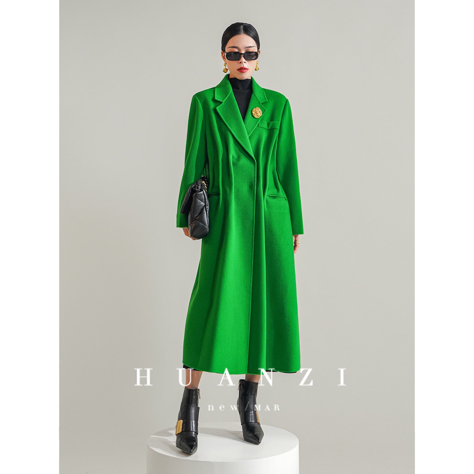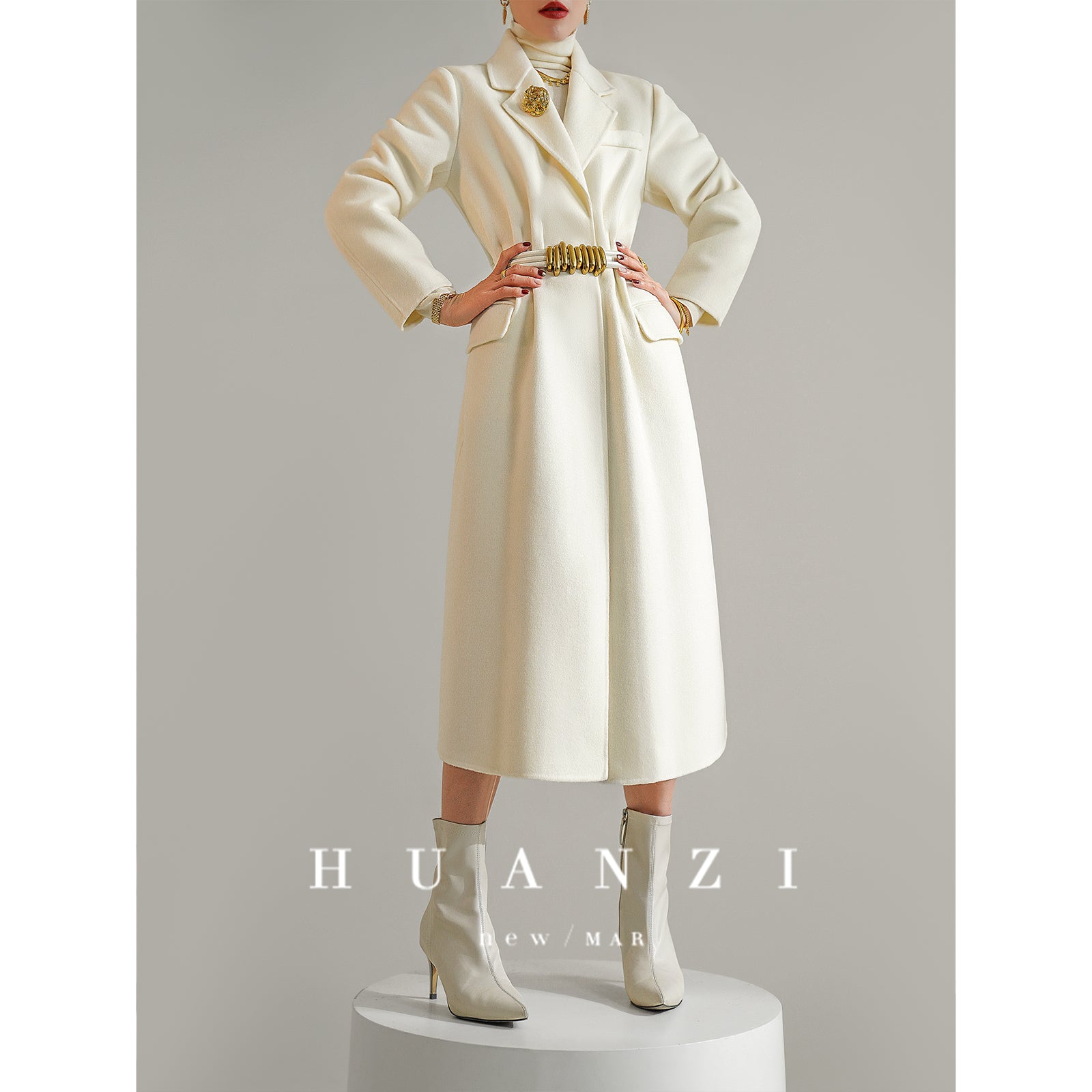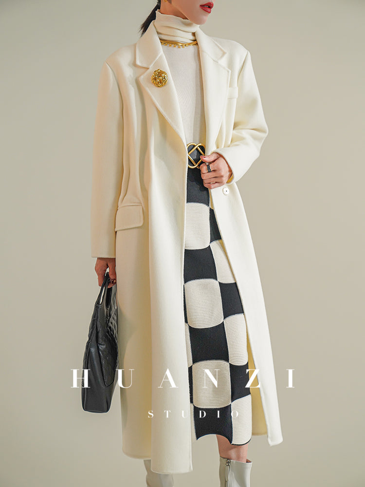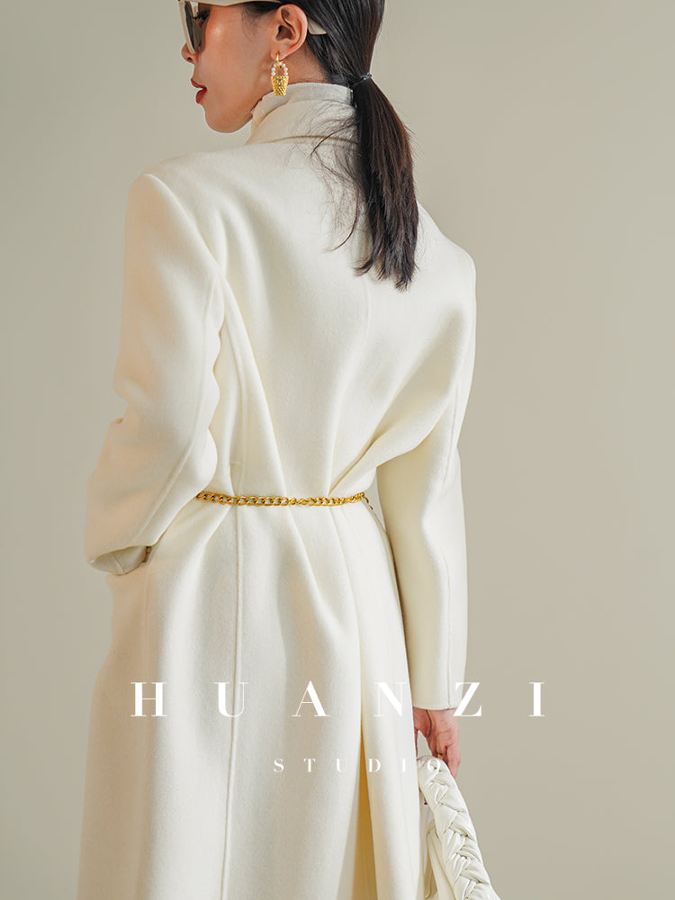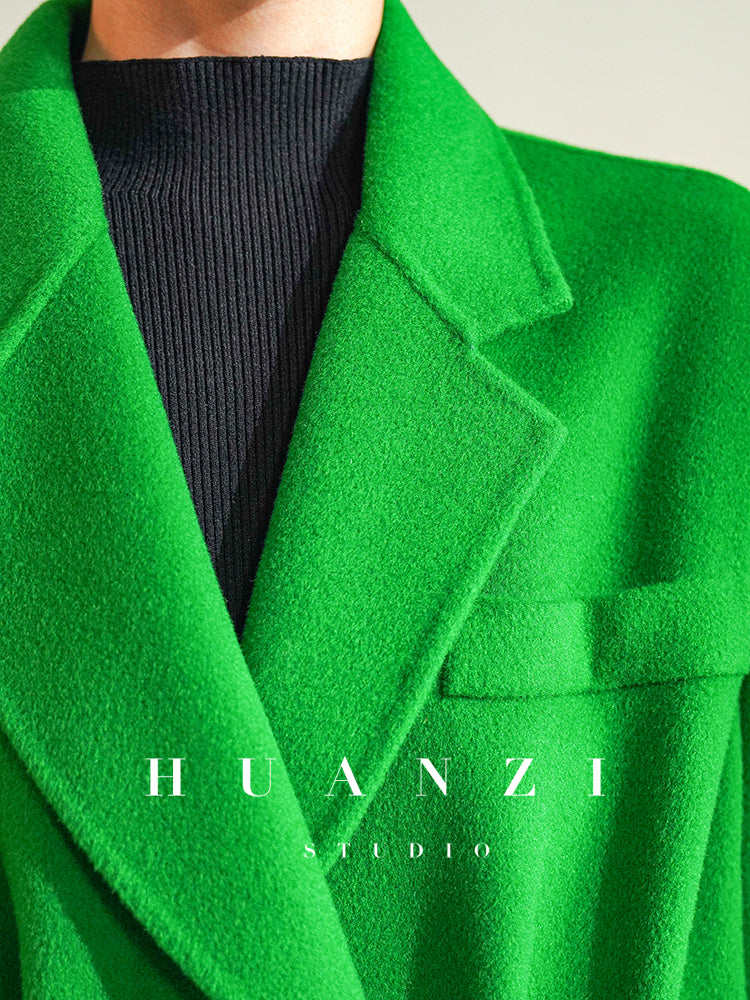 Huanzi high-definition wool pure hand-sewn double-sided woolen mid-length coat- Randy