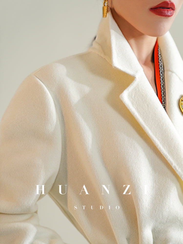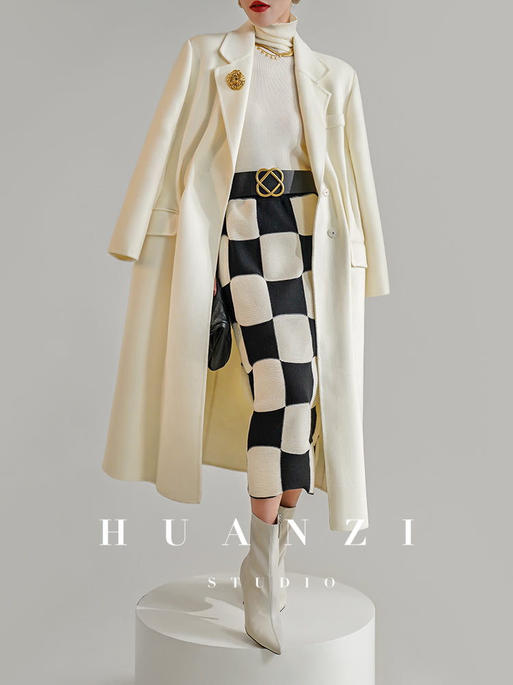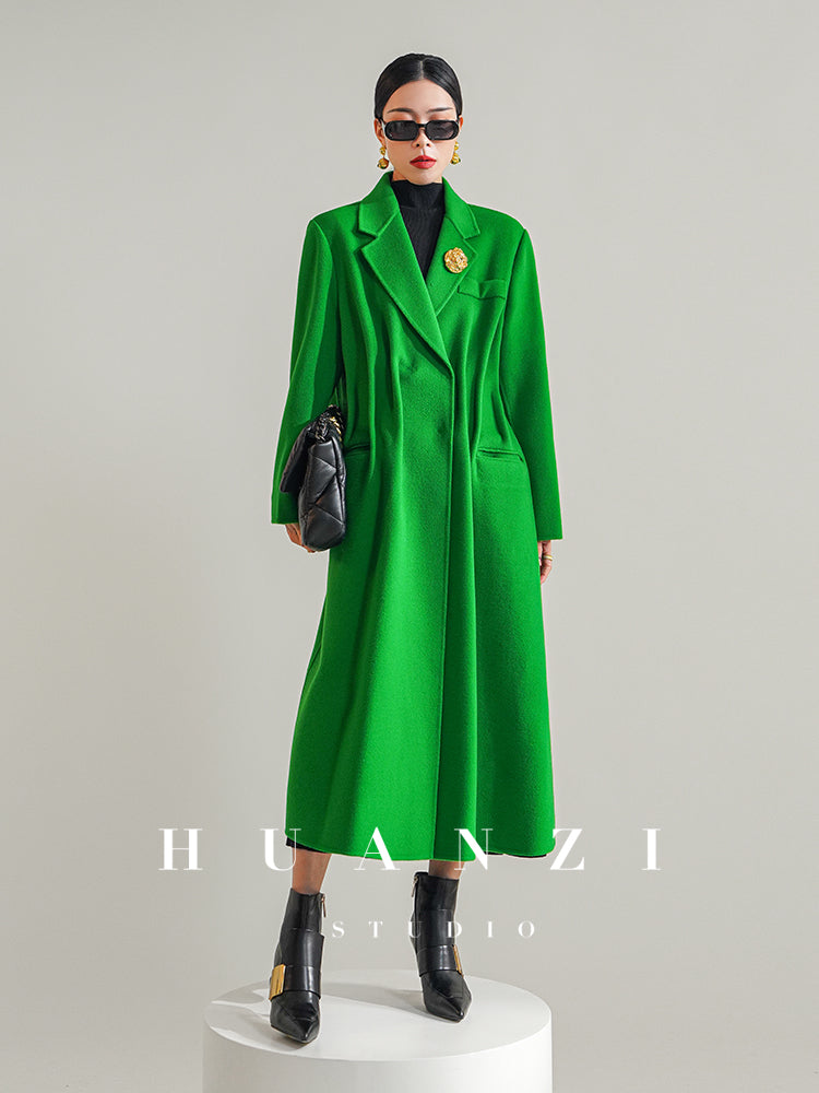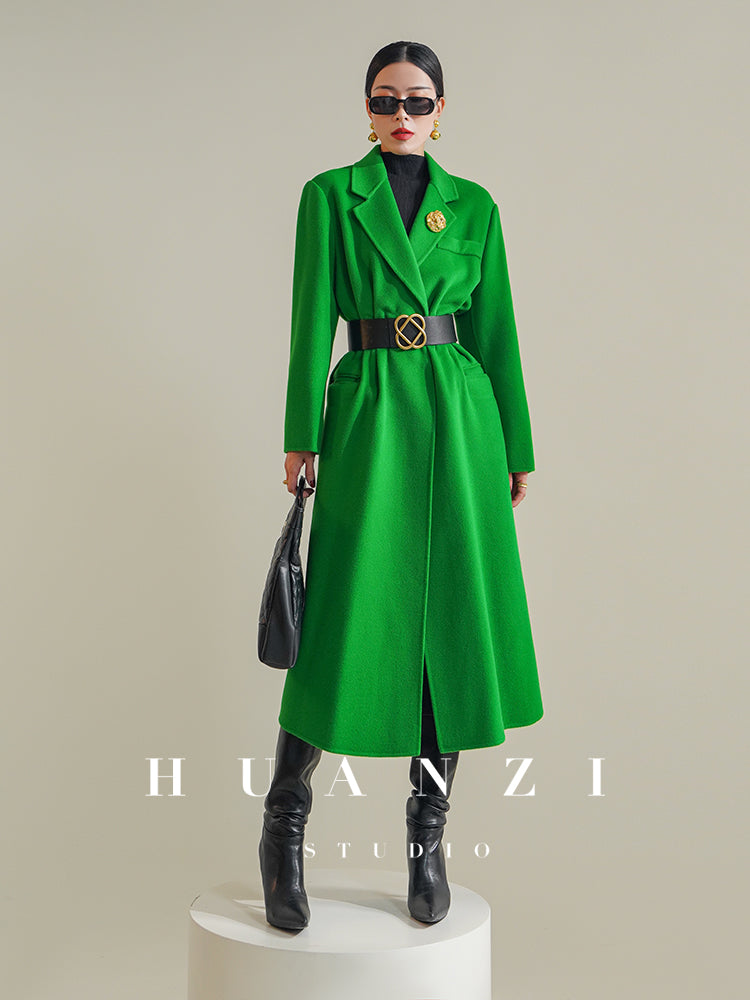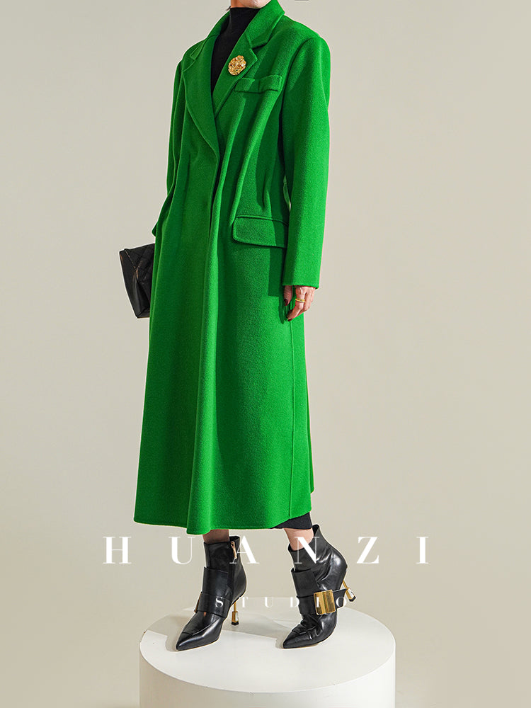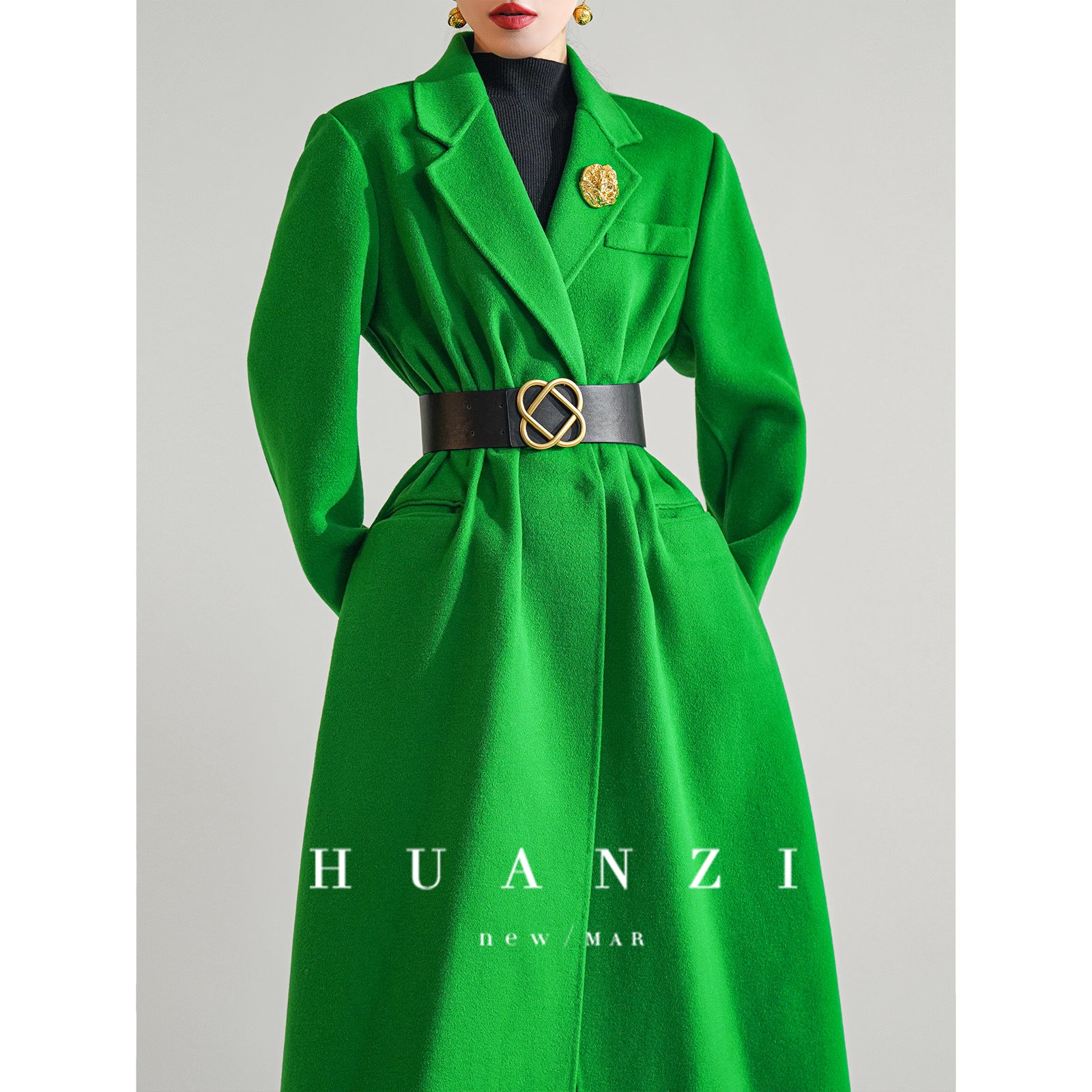 Huanzi high-definition wool pure hand-sewn double-sided woolen mid-length coat- Randy
