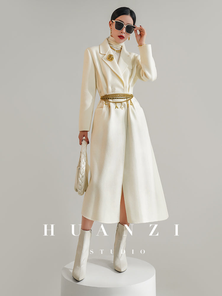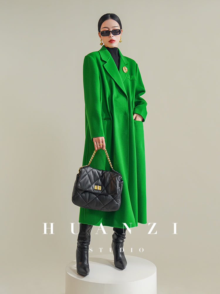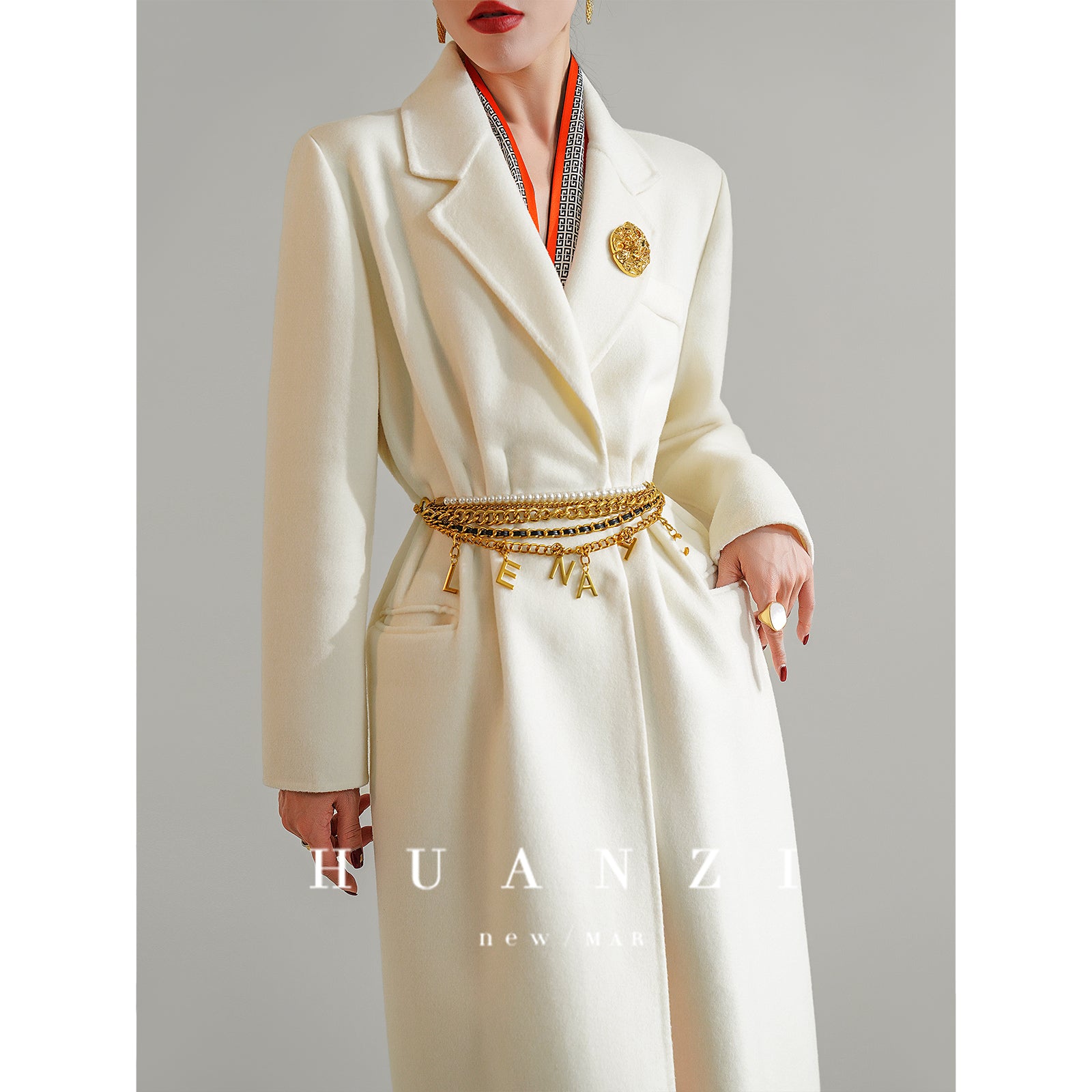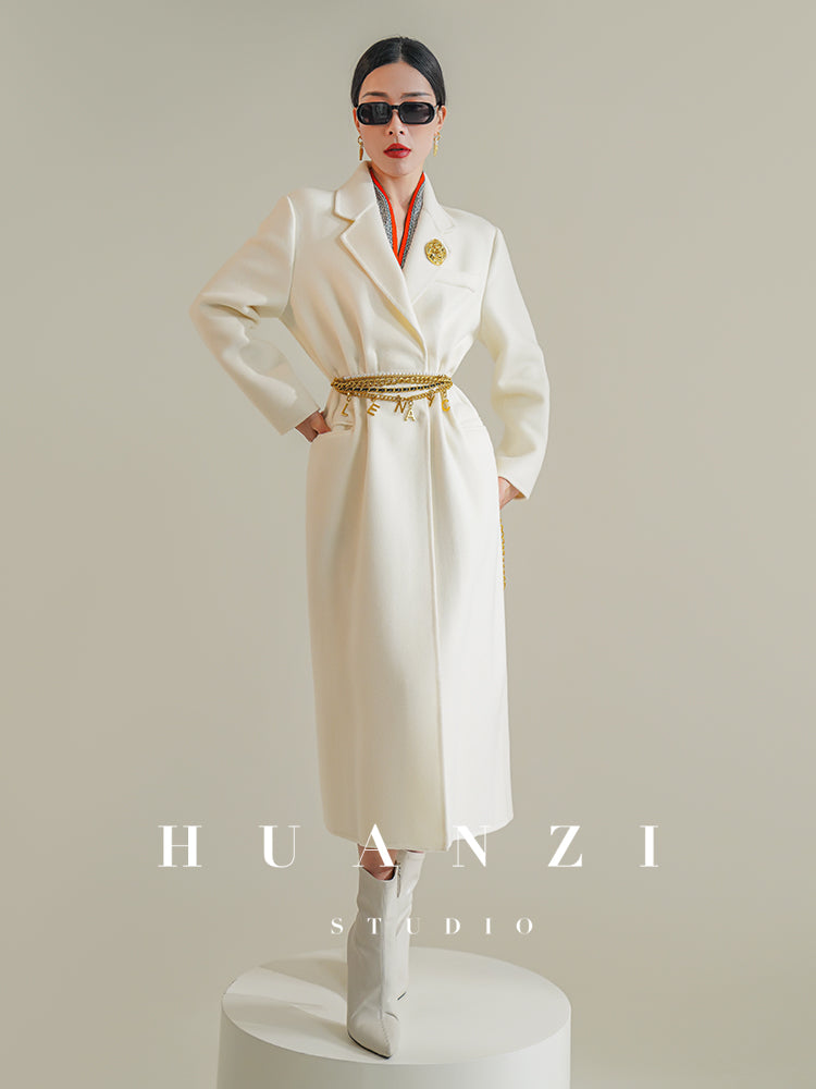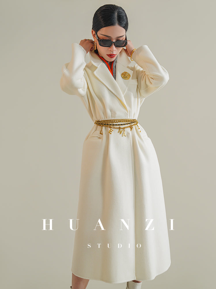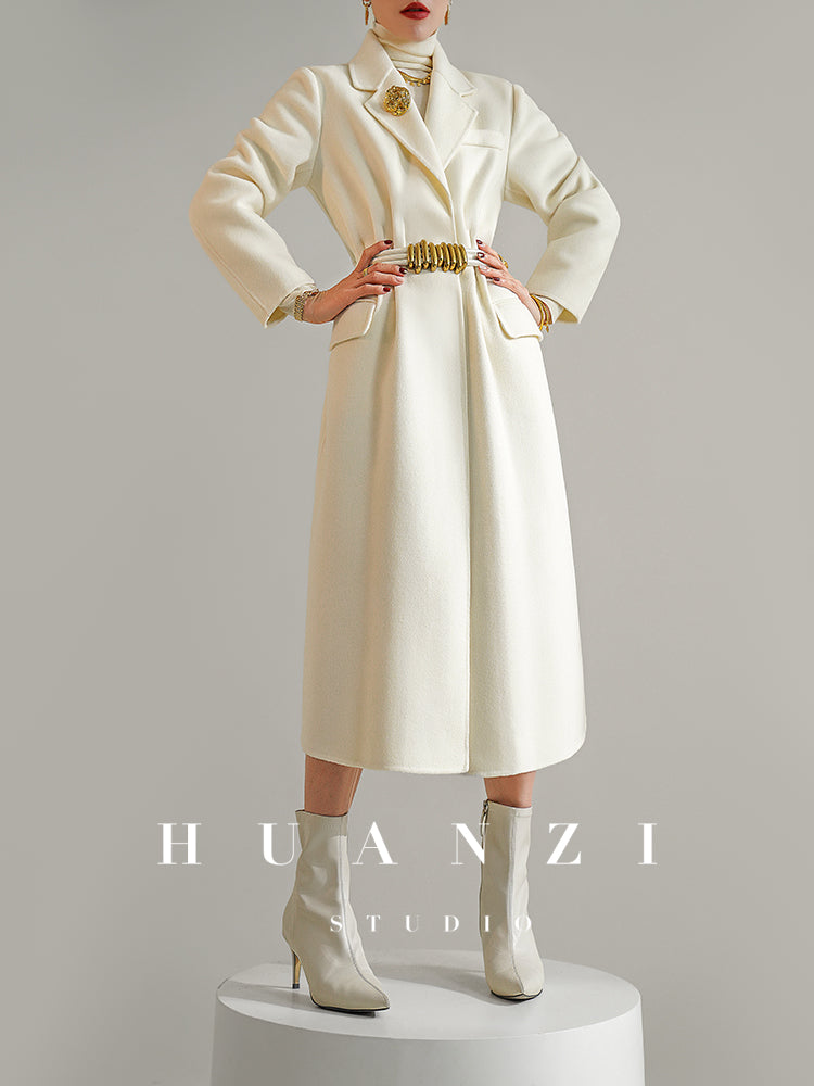 Huanzi high-definition wool pure hand-sewn double-sided woolen mid-length coat- Randy
