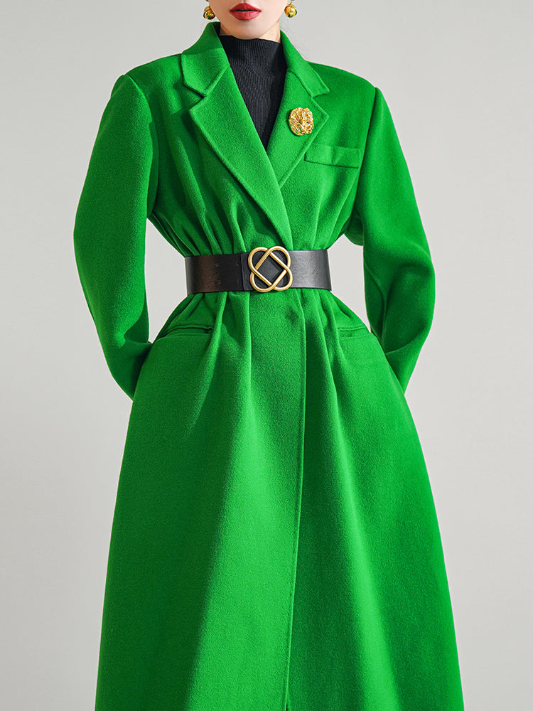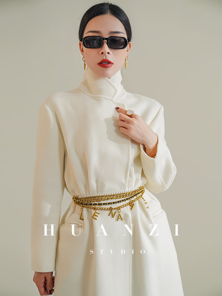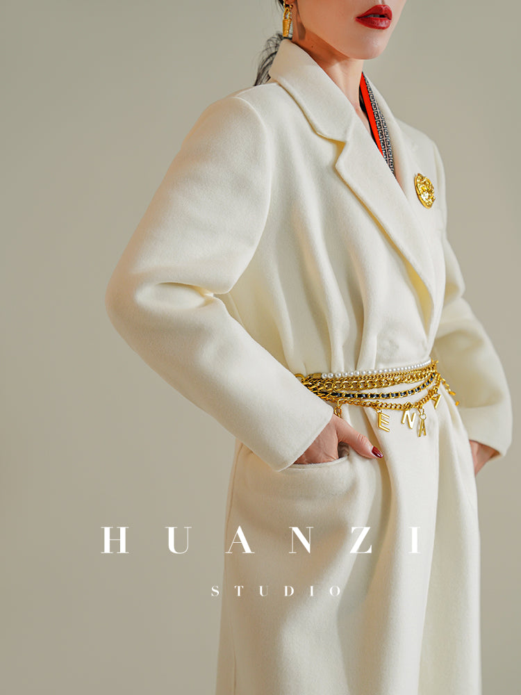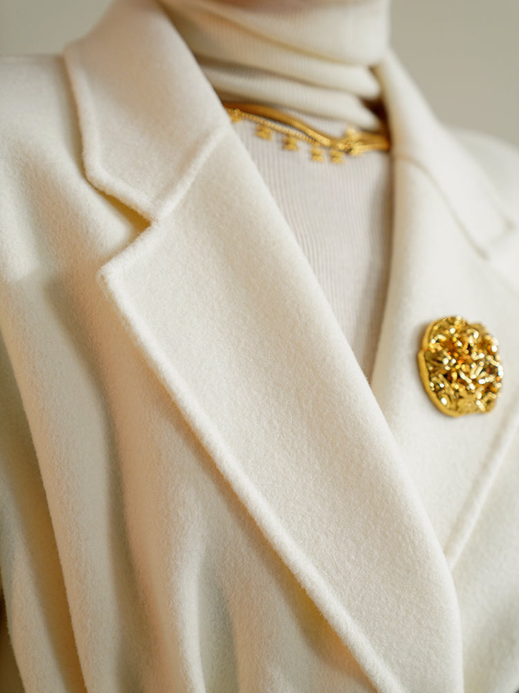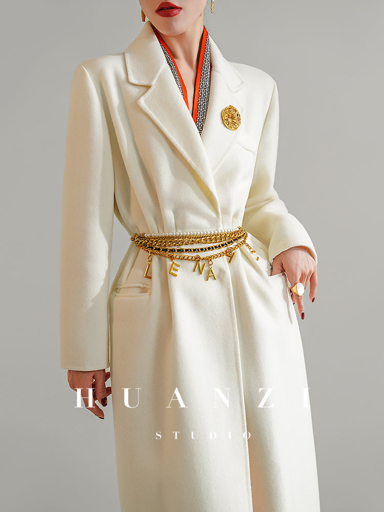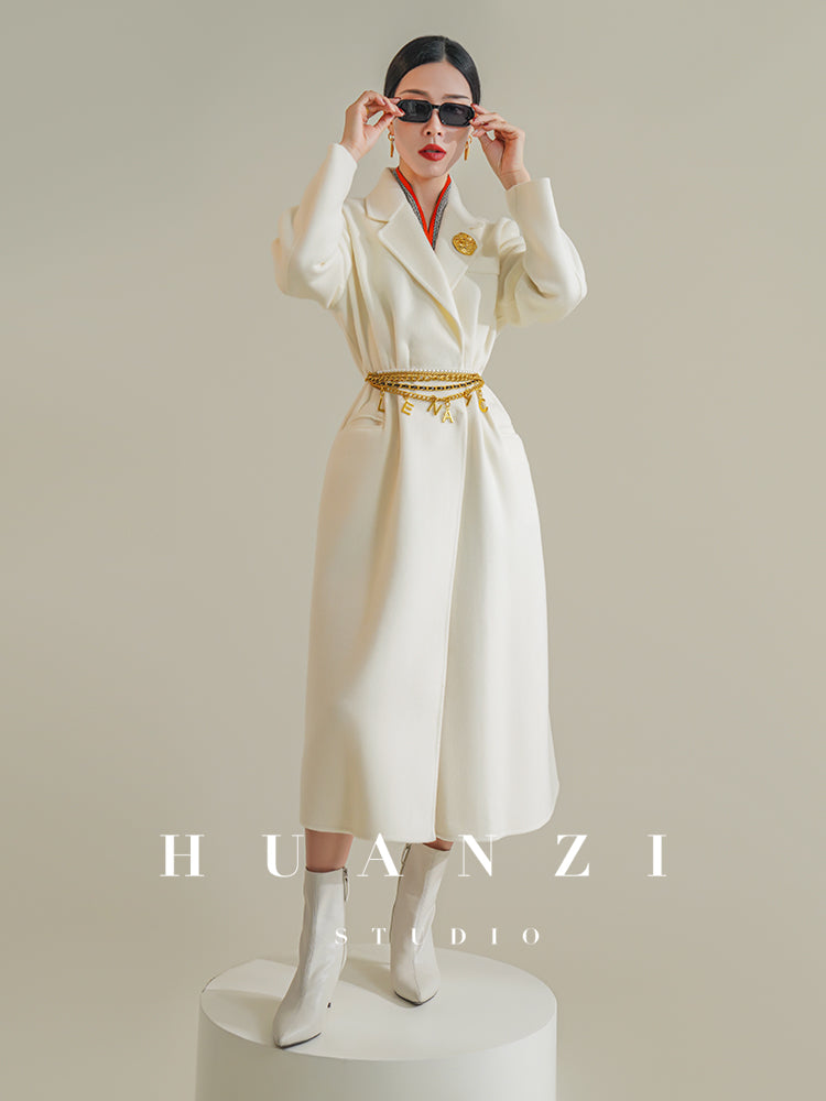 Huanzi high-definition wool pure hand-sewn double-sided woolen mid-length coat- Randy