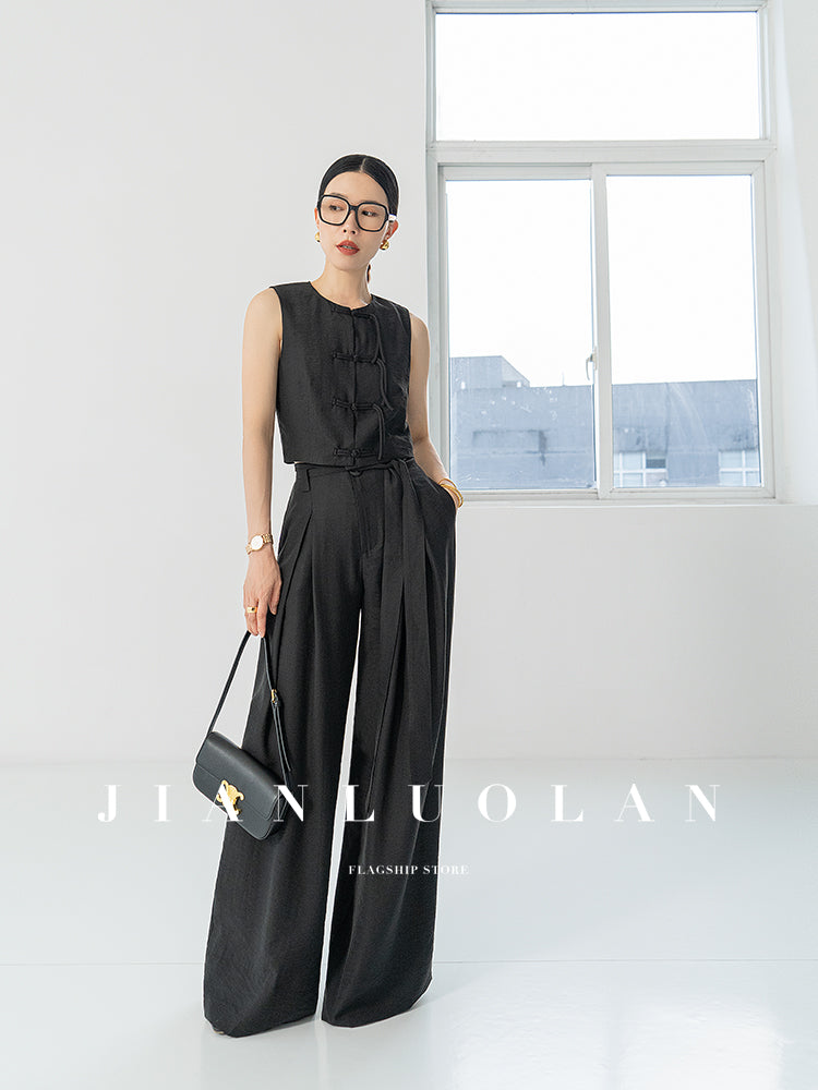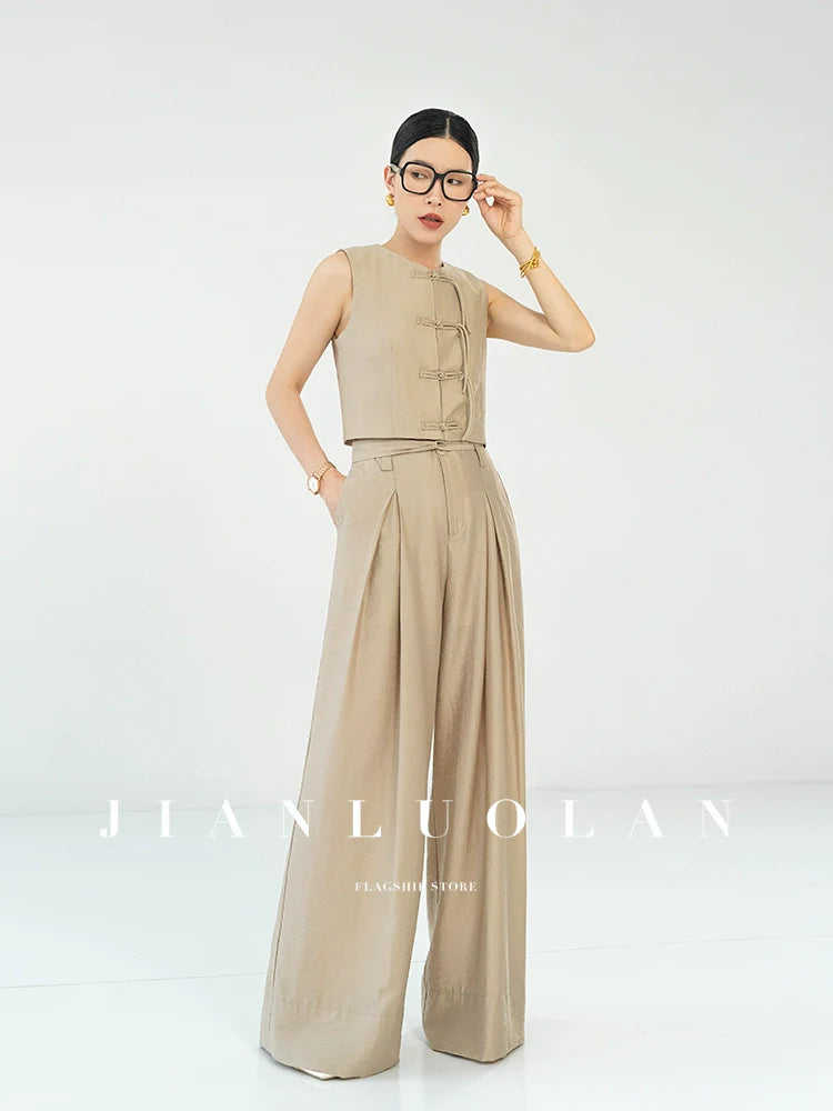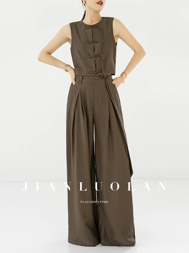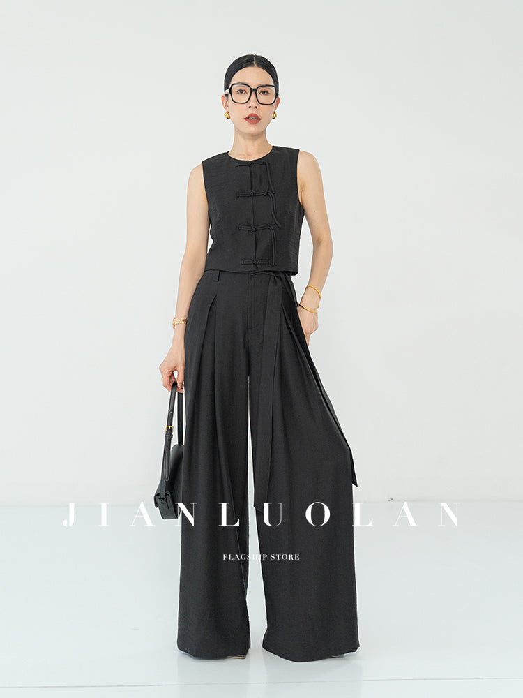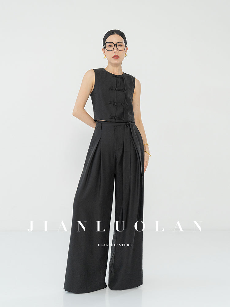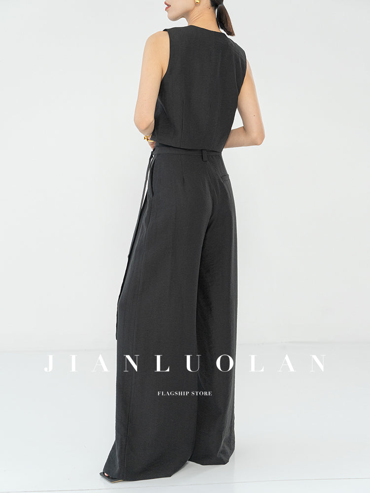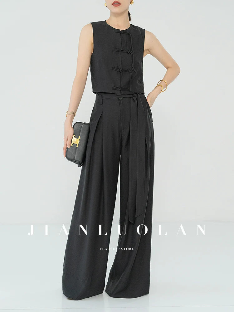 Huanzi custom sleeveless vest top high waist wide leg pants suit two-piece -Wola