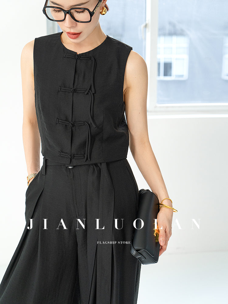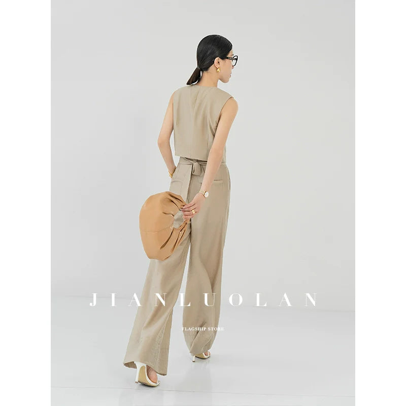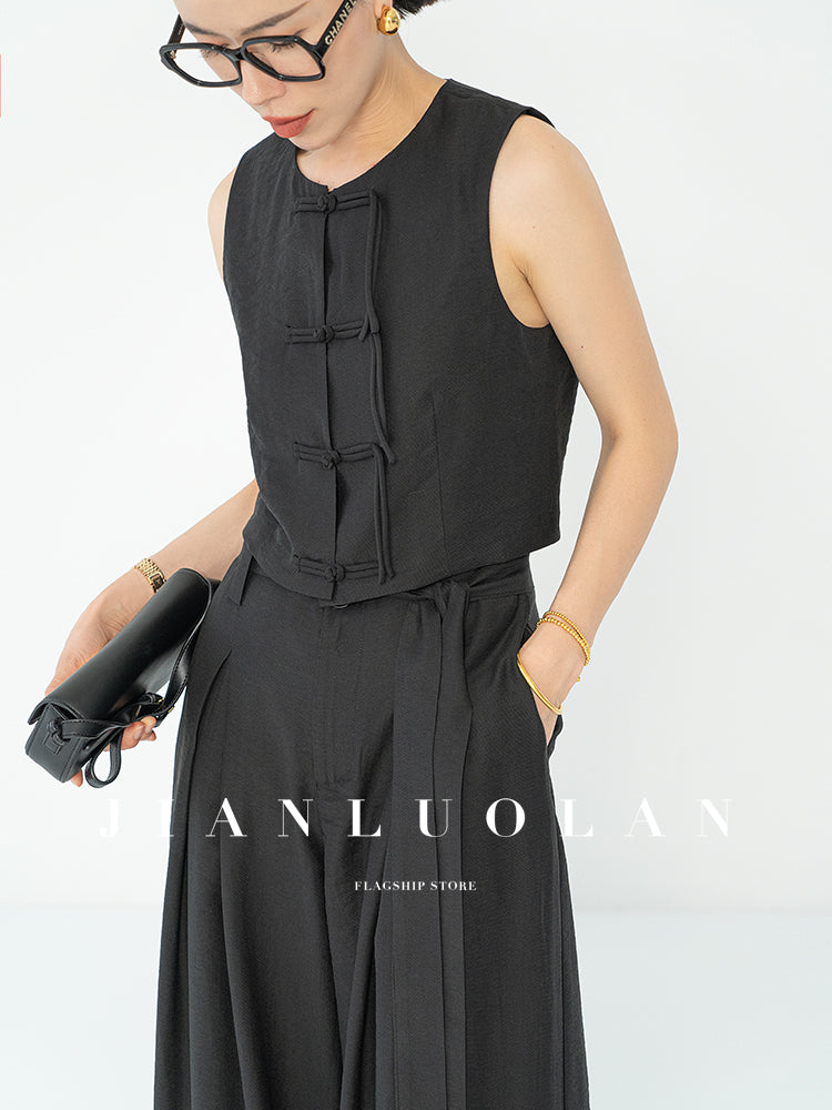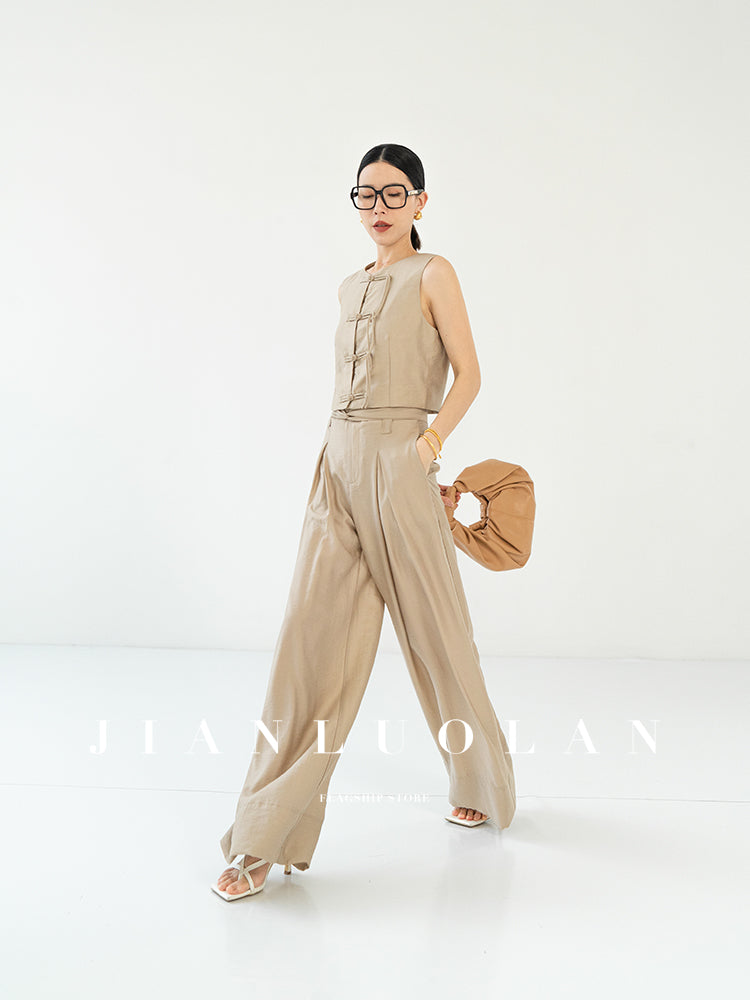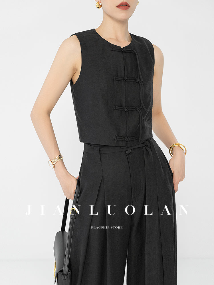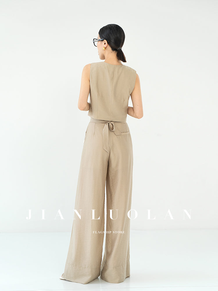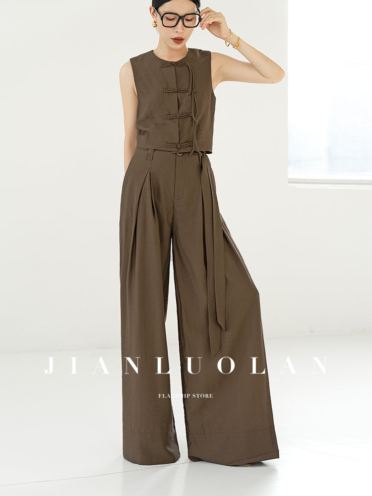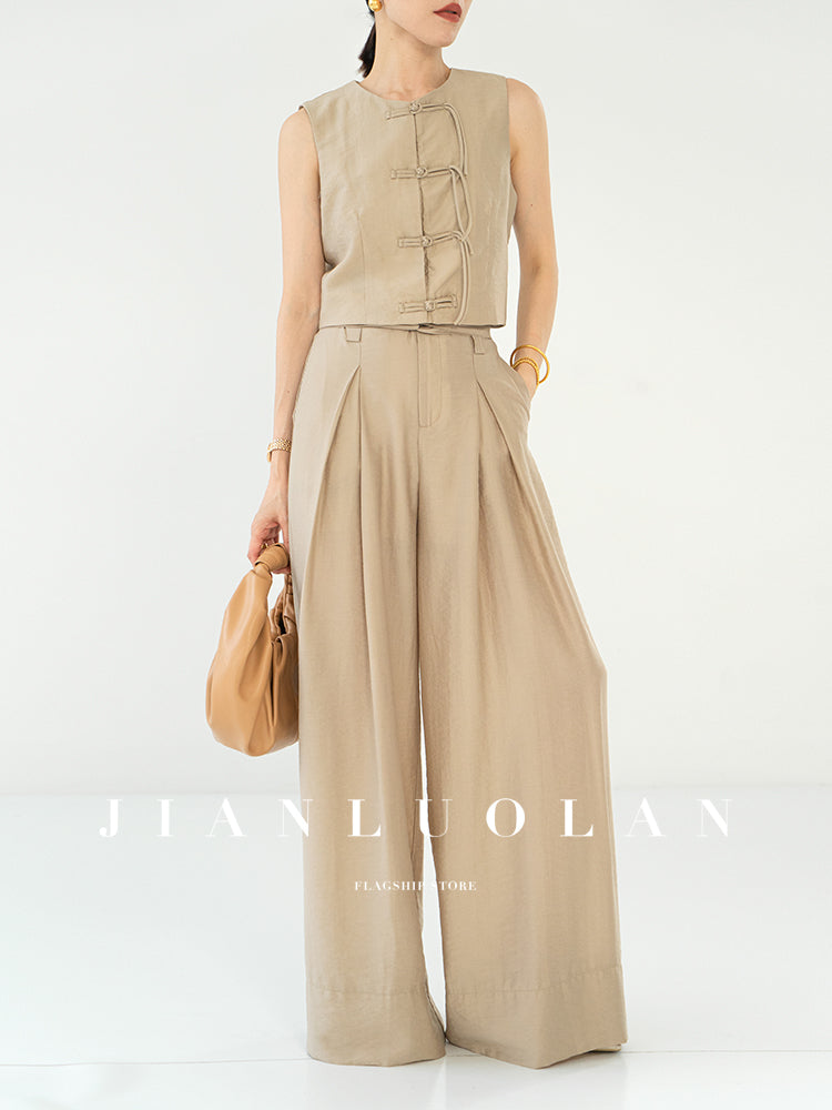 Huanzi custom sleeveless vest top high waist wide leg pants suit two-piece -Wola