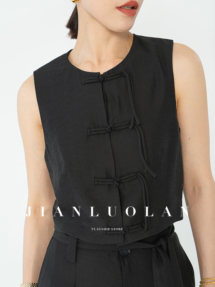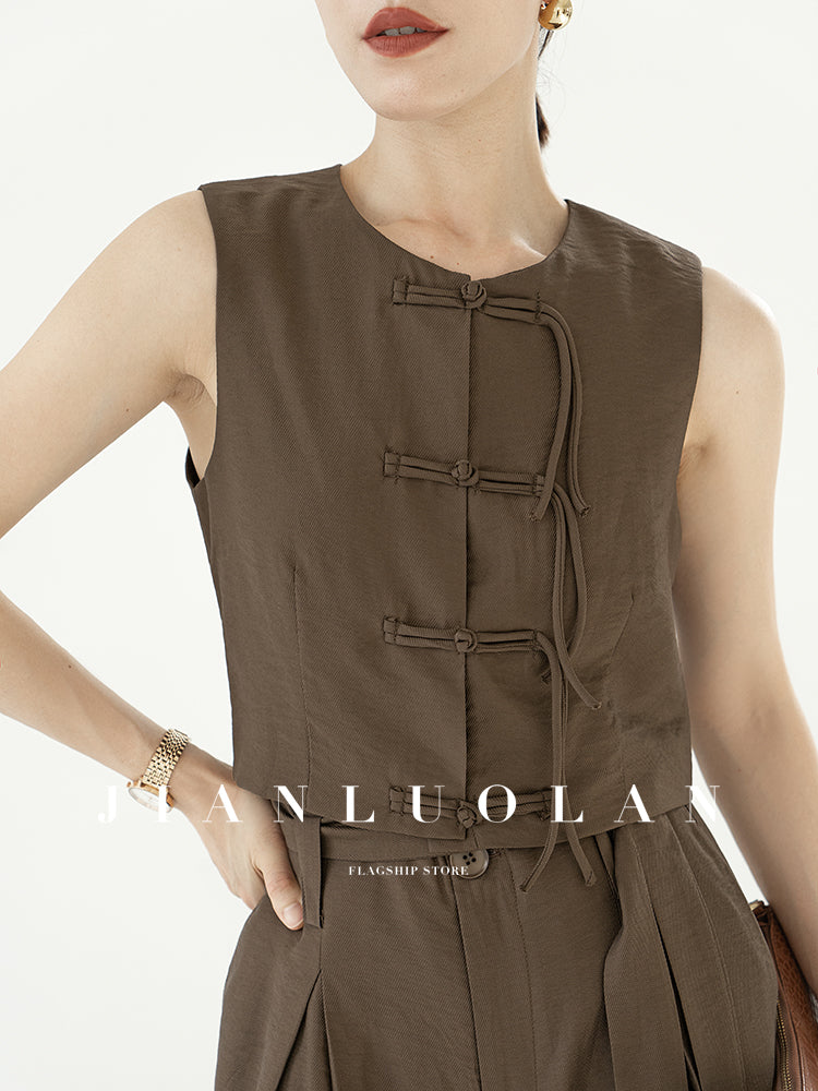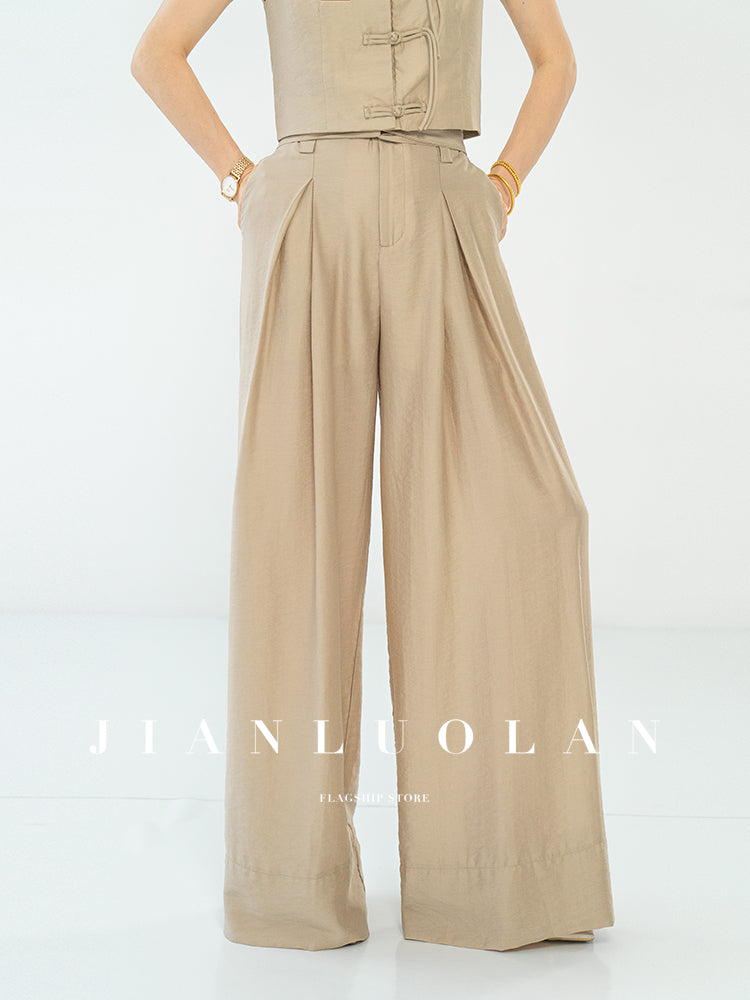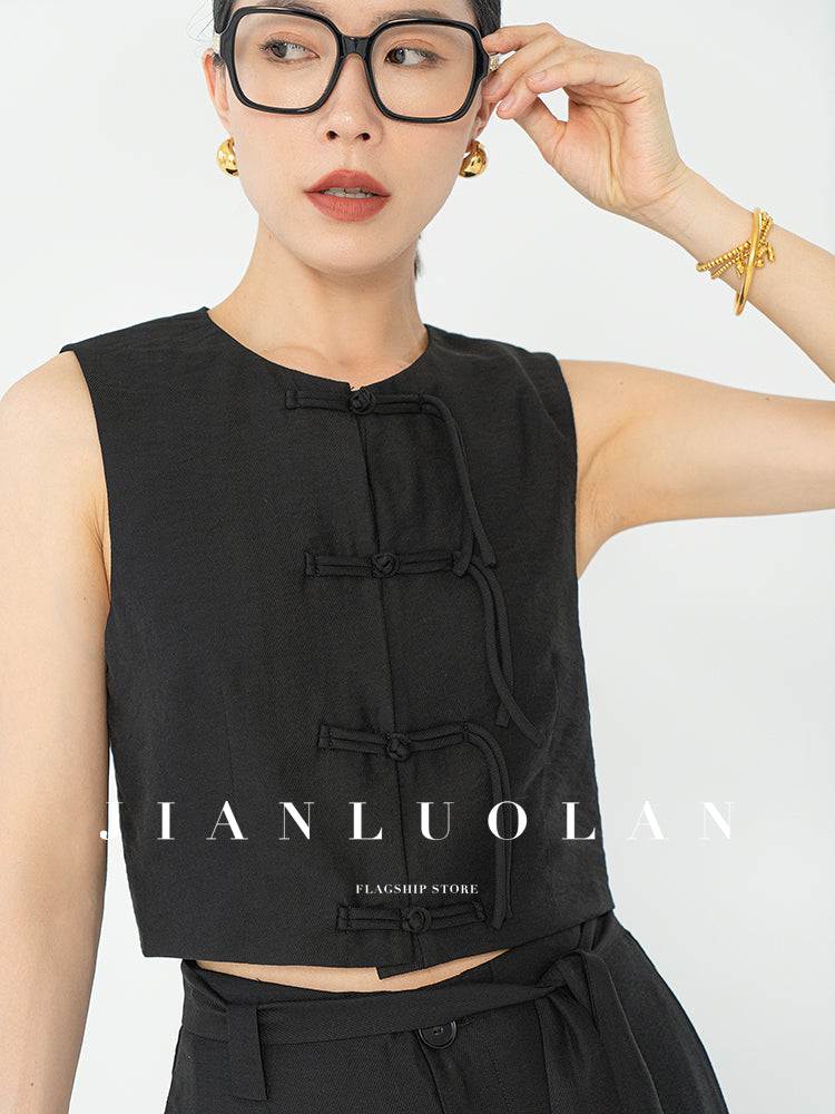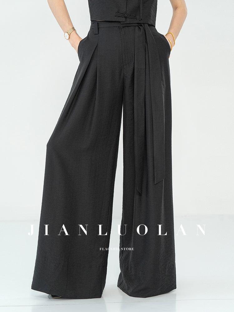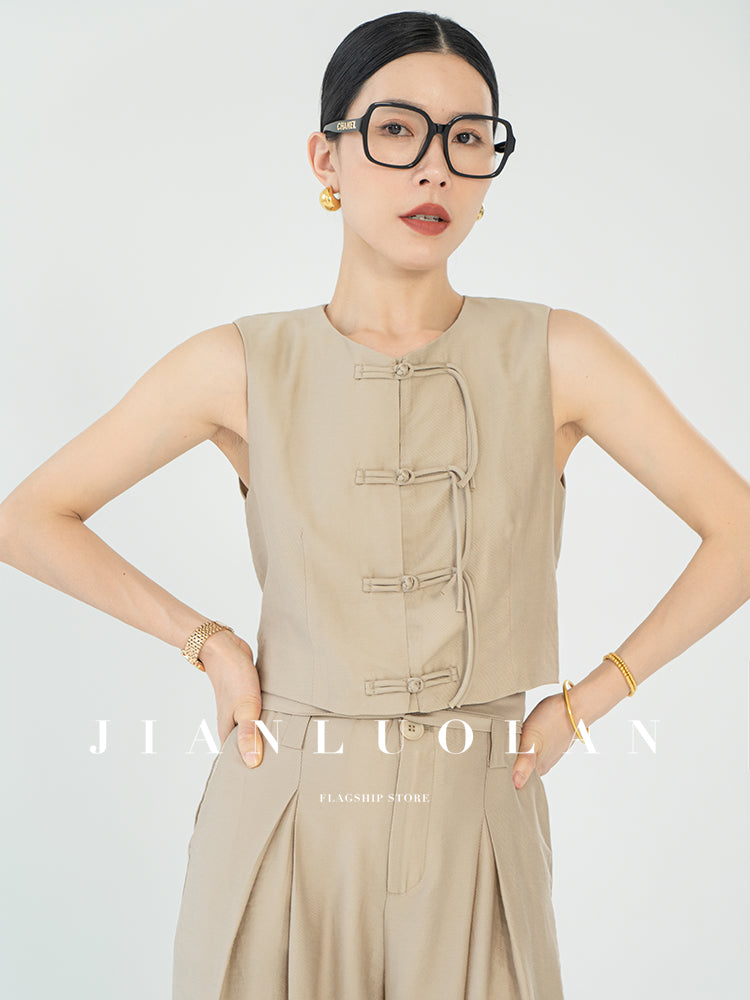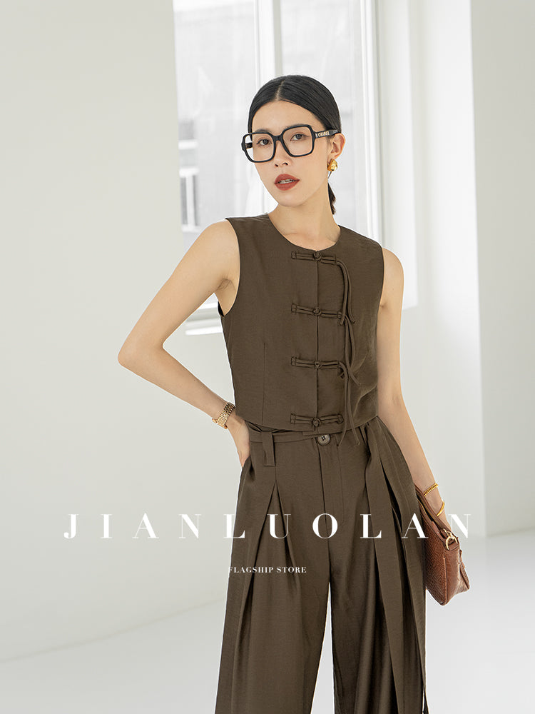Huanzi custom sleeveless vest top high waist wide leg pants suit two-piece -Wola