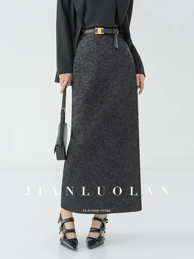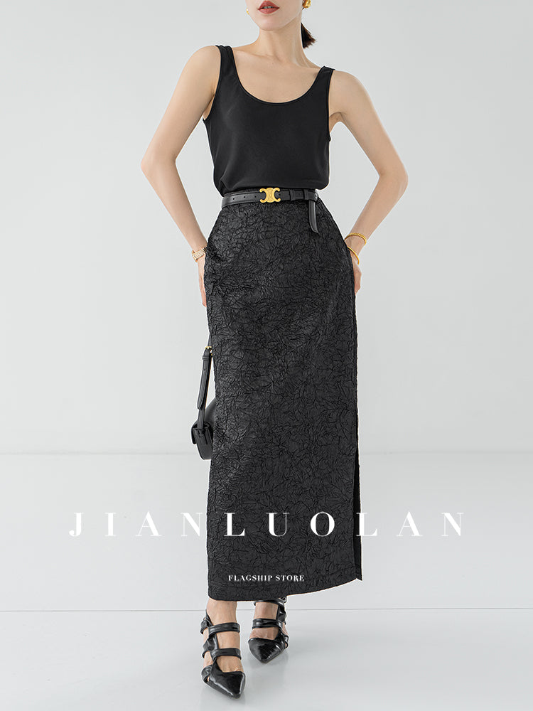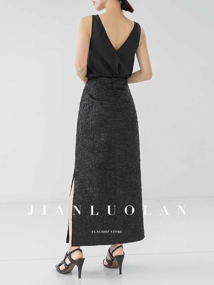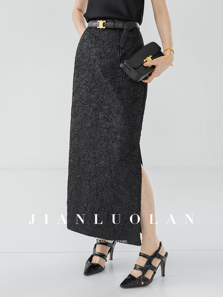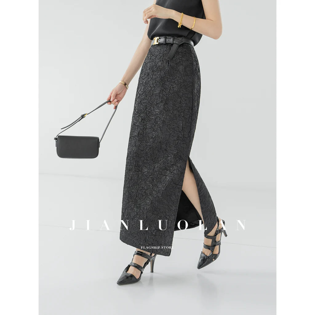 Huanzi heavy pressed stylish anti-wrinkle side slit high-end straight skirt - Ruma