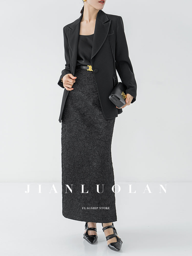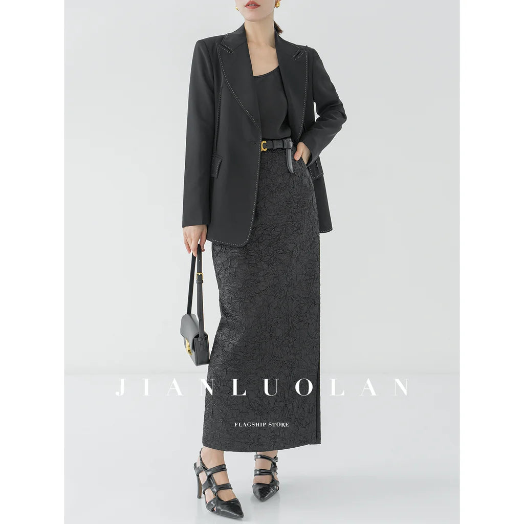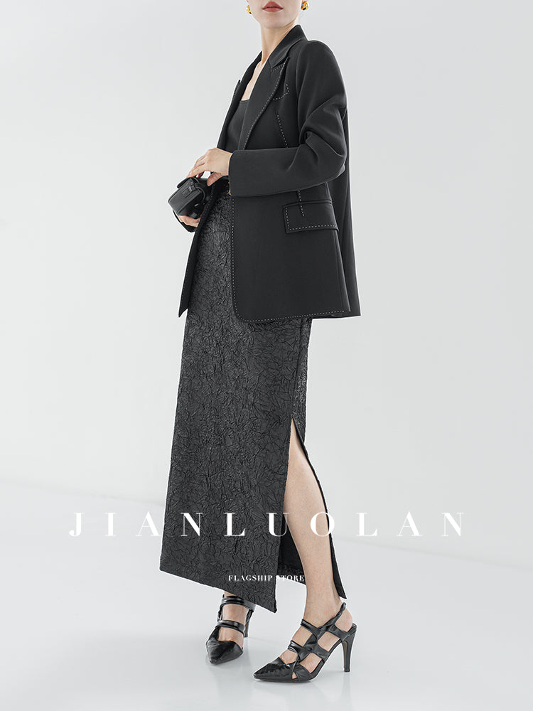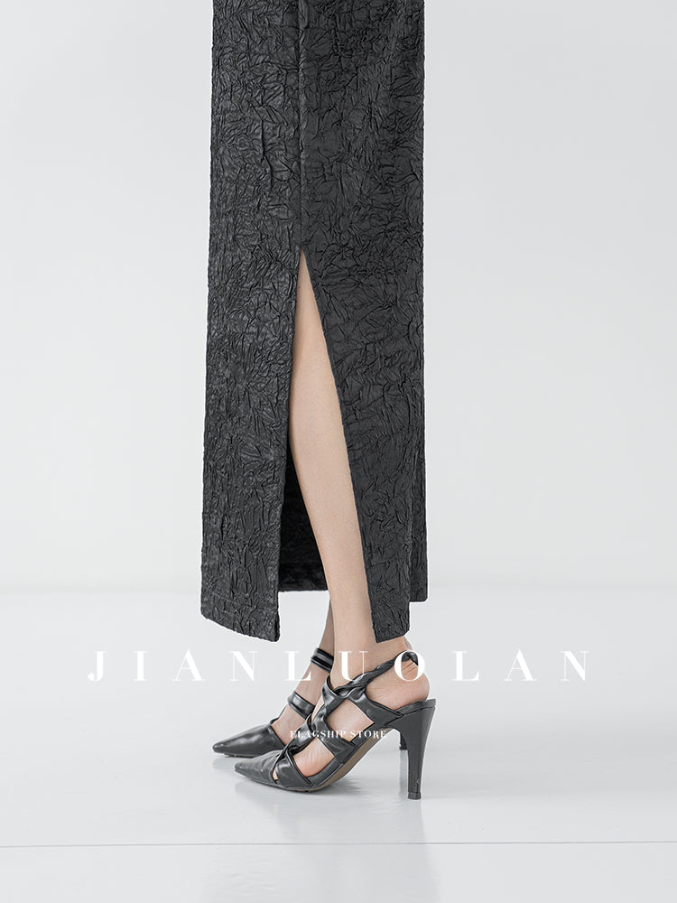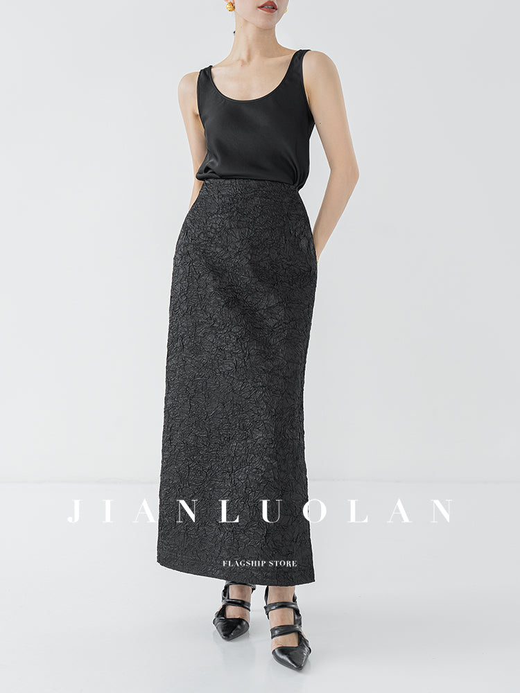Huanzi heavy pressed stylish anti-wrinkle side slit high-end straight skirt - Ruma