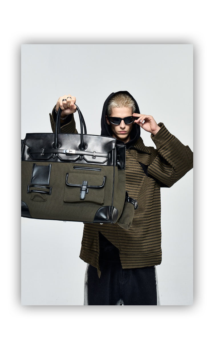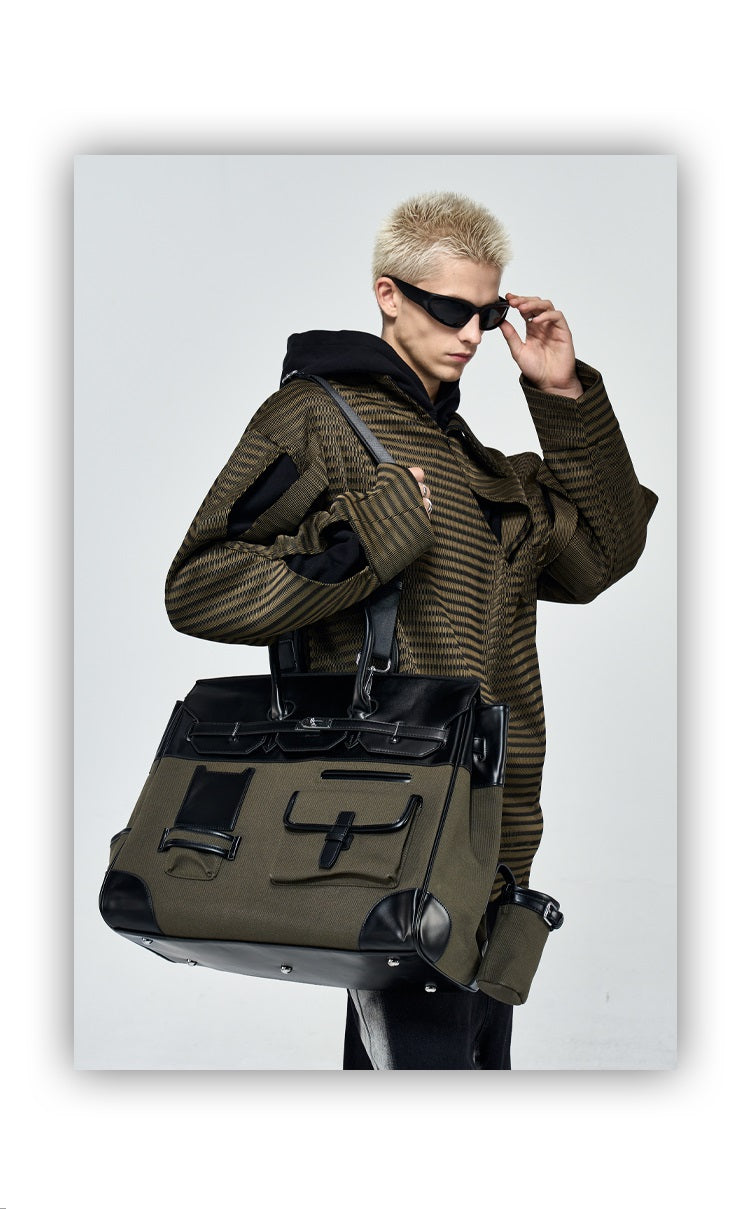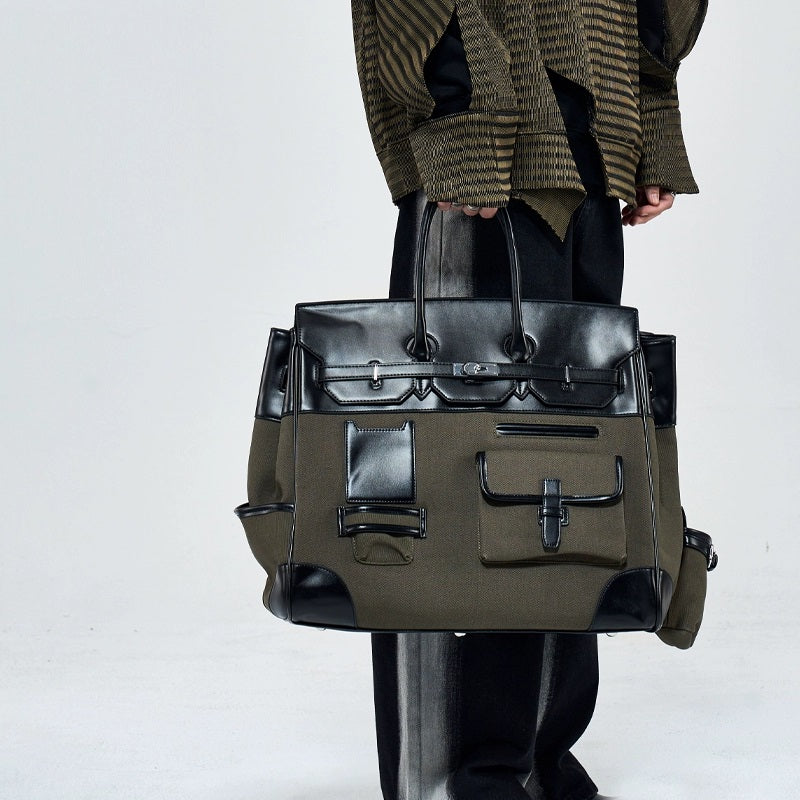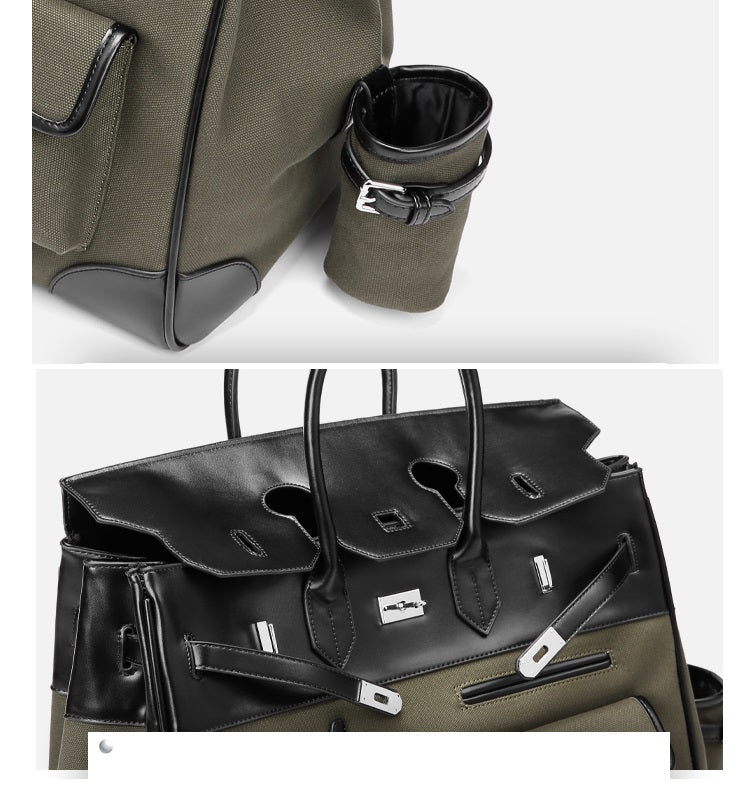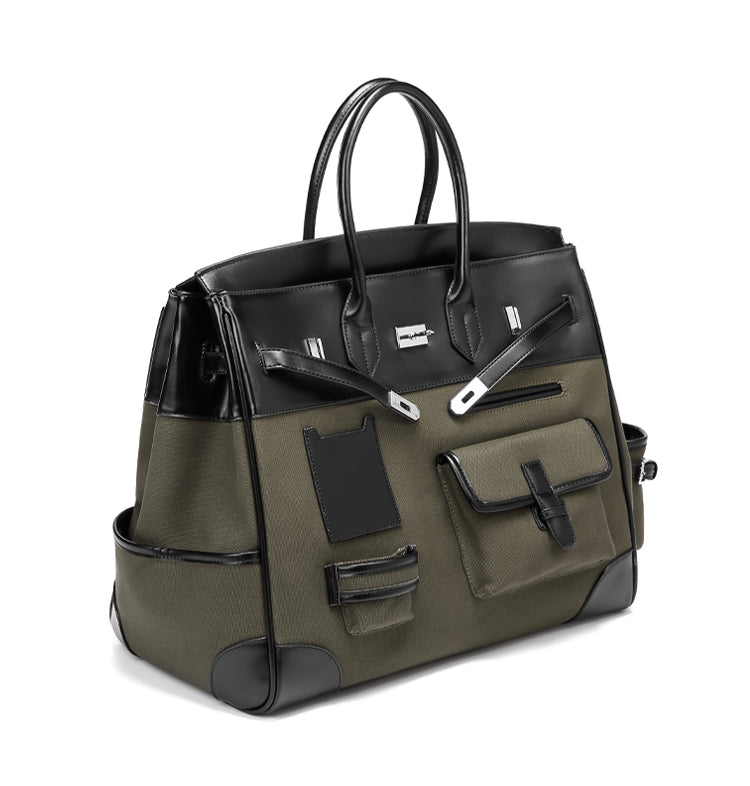 This Army Green Retro Birkin-inspired handmade canvas tote delivers high fashion and sophistication. Perfect for the modern traveller, the unisex design features a spacious cargo tote for your weekend getaways, while the classic yet trendy silhouette and signature handle add chic, street-style flair. Pack away your essentials in effortless style with this elegant and exclusive bag.