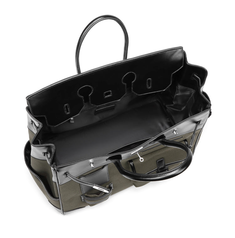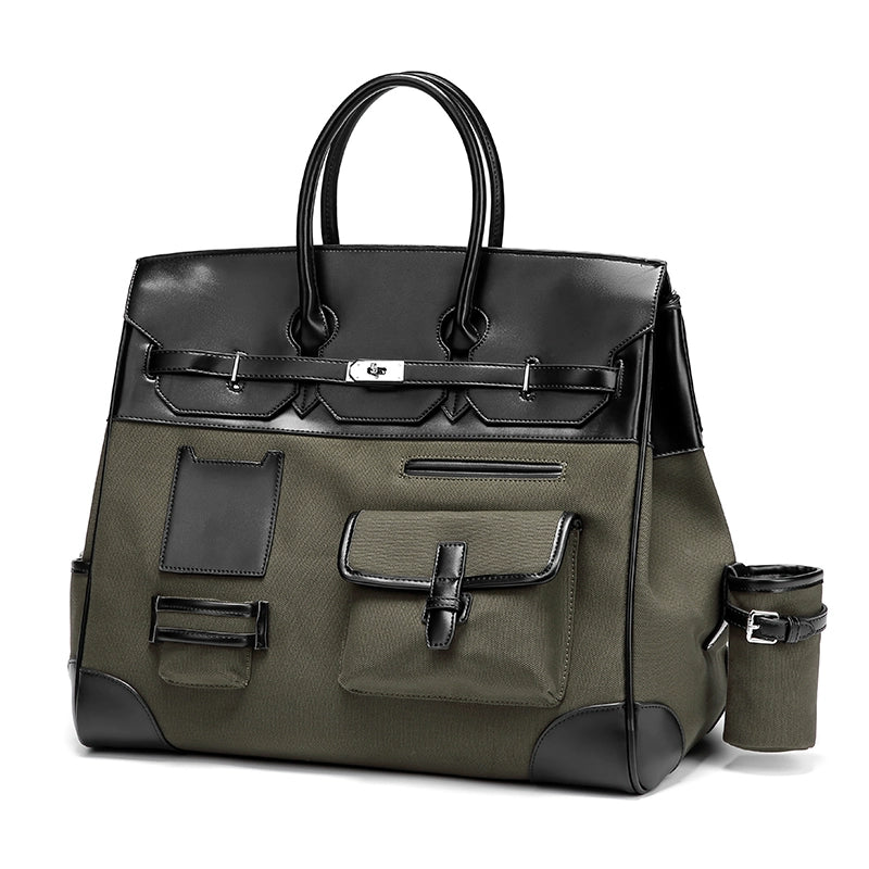 Army green Retro birkin inspired handmade canvas men business travel tote women weekender travel overnight weekend handbag